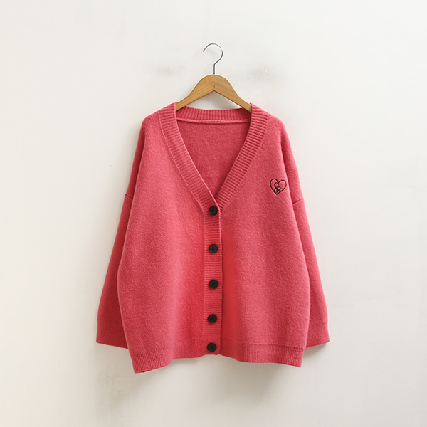 자체제작/ 오버핏 브이넥 하트자수 가디건 #22507