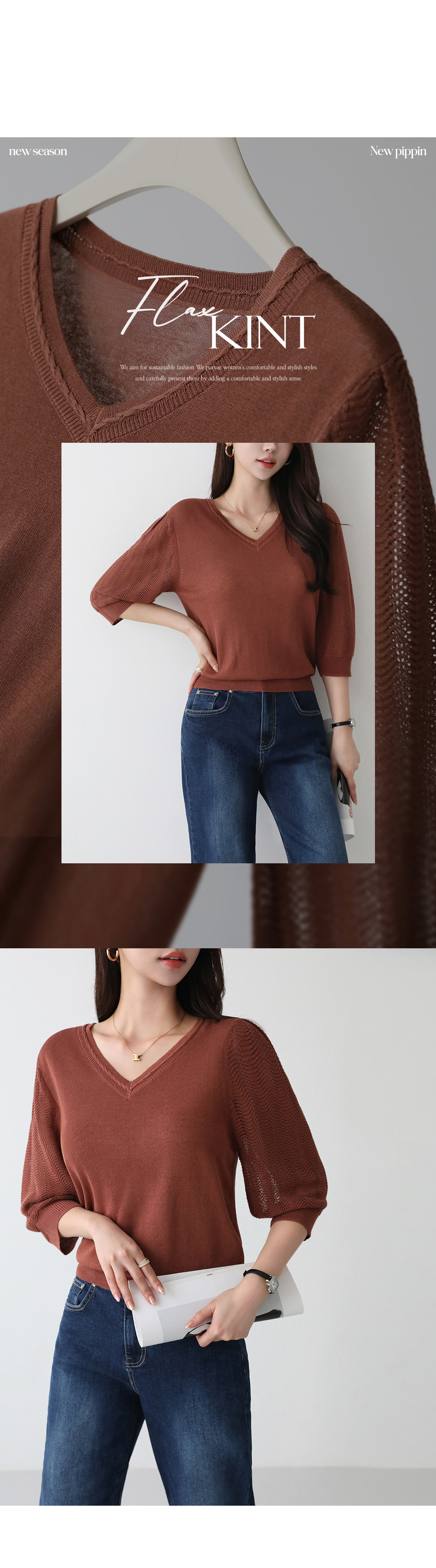 - 여름철 즐기기 좋은 비스코스 린넨(아마)혼방 니트
