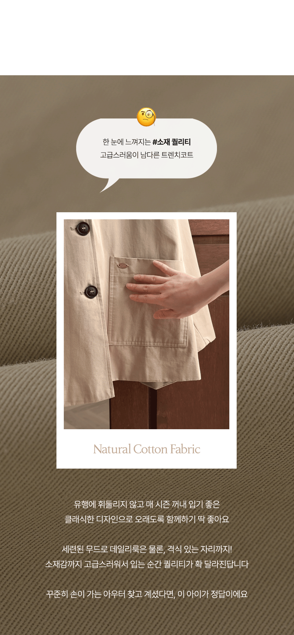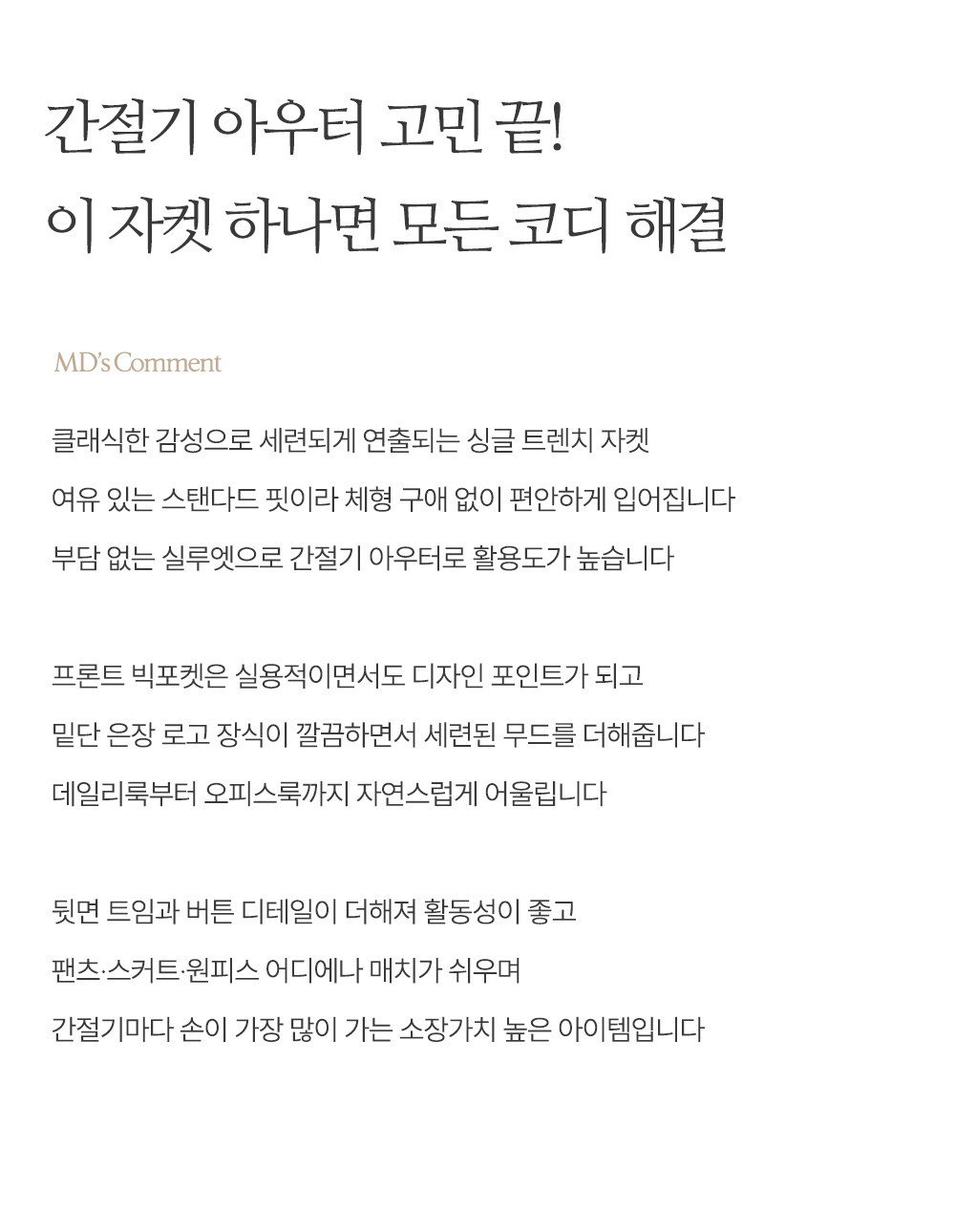 - 클래식한 감성의 싱글 트렌치 자켓
