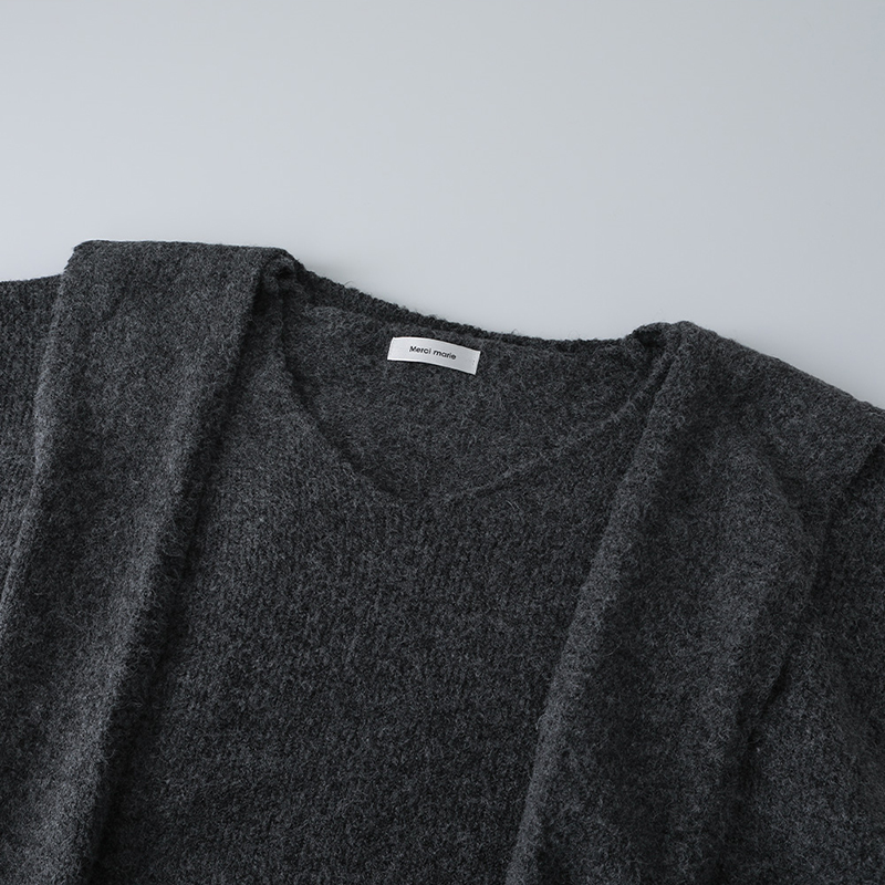 - 브이넥 니트와 롱스커트, 같은 원단의 숄이 함께 구성되어 있음
