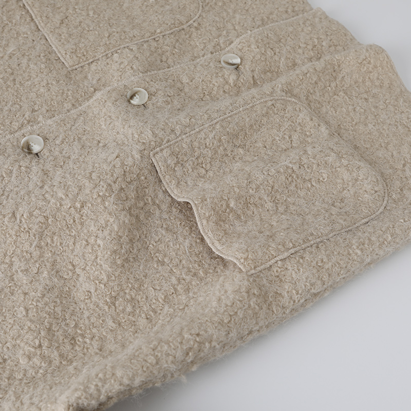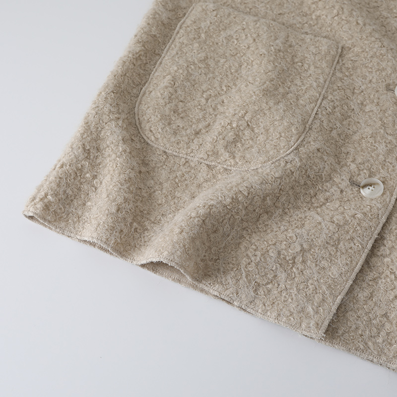 - 보송한 부클 원단으로 제작되어 보온성과 터치감이 우수