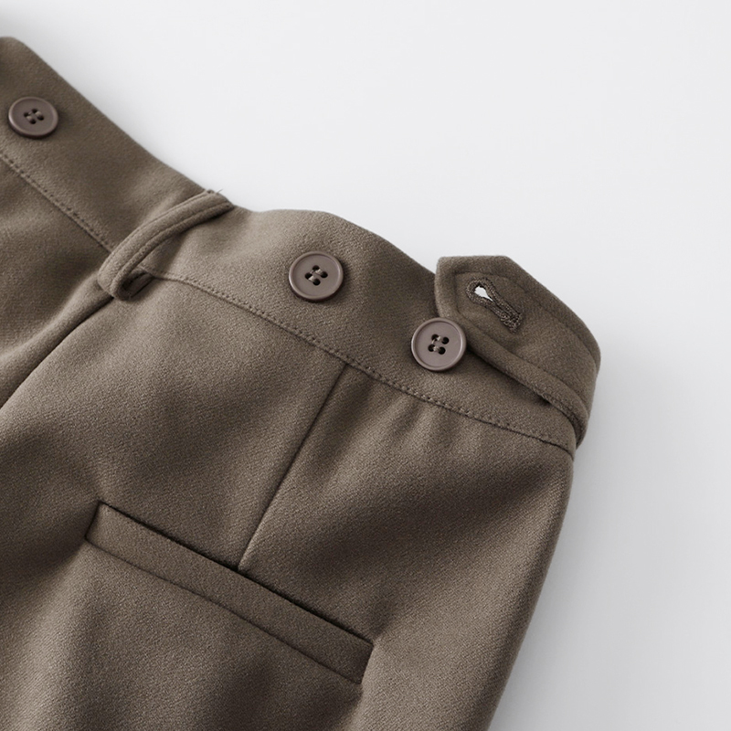 - 허리 앞부분은 이중 잠금 버튼 디테일로 안,겉 두번 잡아주며