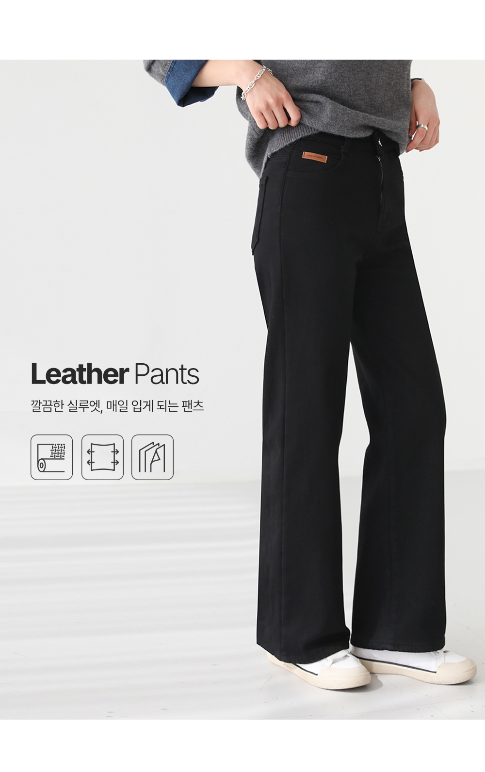 - 허리를 안정감 있게 잡아주는 하이웨스트 라인과 스트레이트 핏으로 다리를 길고 슬림하게 연출