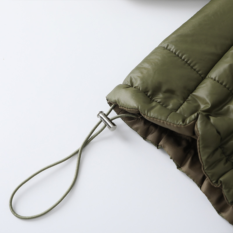 - 하이넥 + 넥·밑단 스트링 디테일로 바람 차단 및 핏 조절이 가능한 실용적 설계