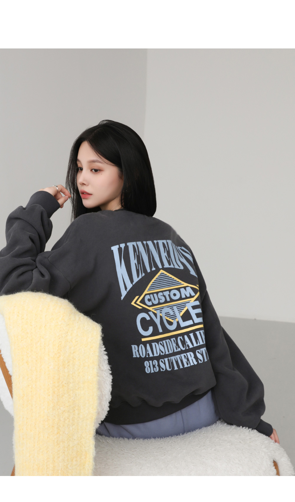 - 드롭된 숄더라인 전체적으로 낙낙하게 떨어지는 루즈핏으로 편안한 착용감