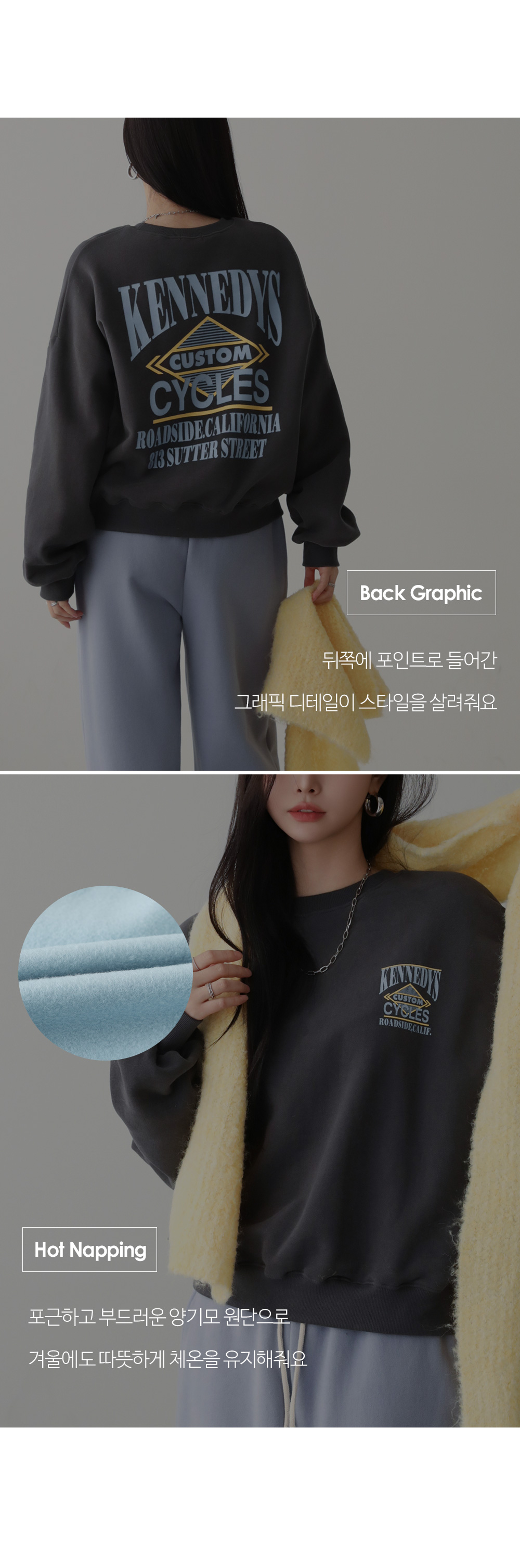 - 앞 뒤 컬러배색이 들어간 레터링 디테일로 캐주얼한 무드