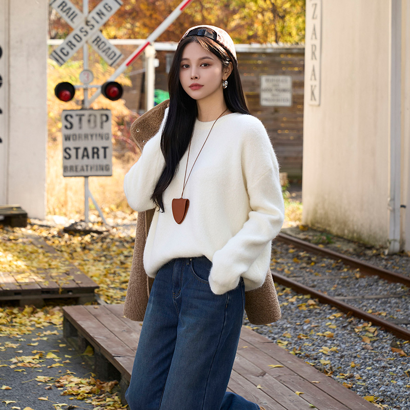 - 폭신하고 보드라운 헤어감이 은은하게 살아있는 니트
