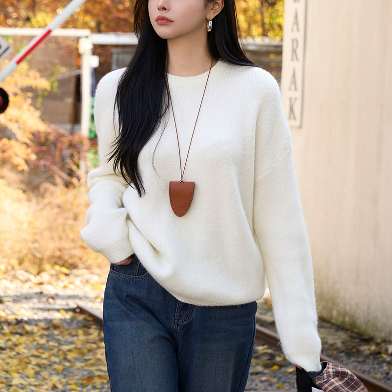 - 라운드넥으로 단정하며 얼굴 라인을 부드럽게 감싸주는 디자인