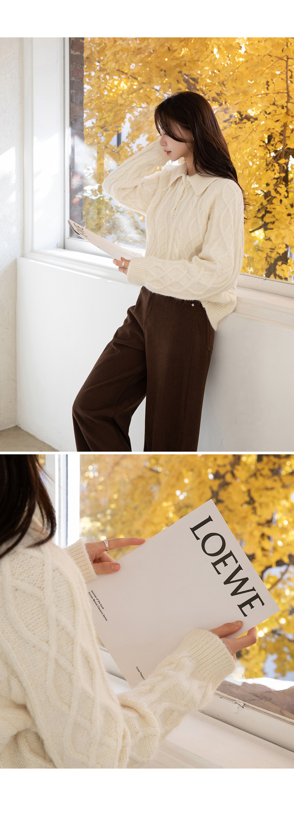 - 클래식한 케이블 짜임으로 입는 순간 고급스러운 분위기가 연출됨