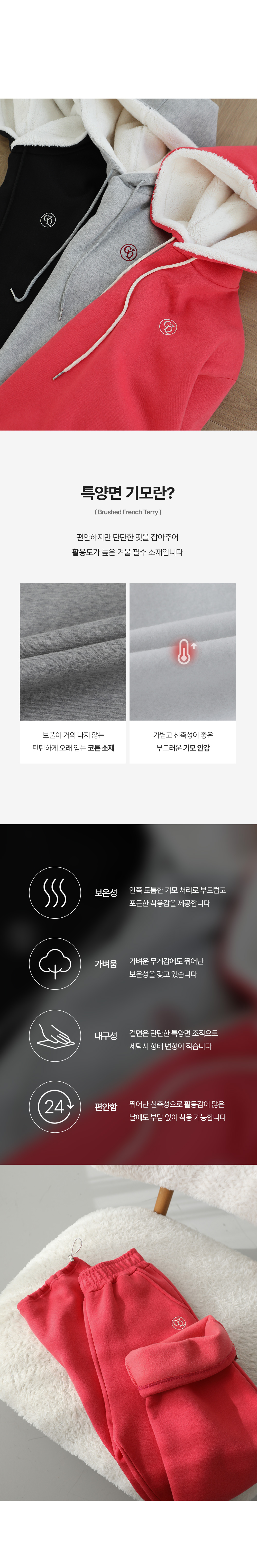 - 특양면 기모로 가볍고 신축성이 좋고 따뜻한 세트 아이템