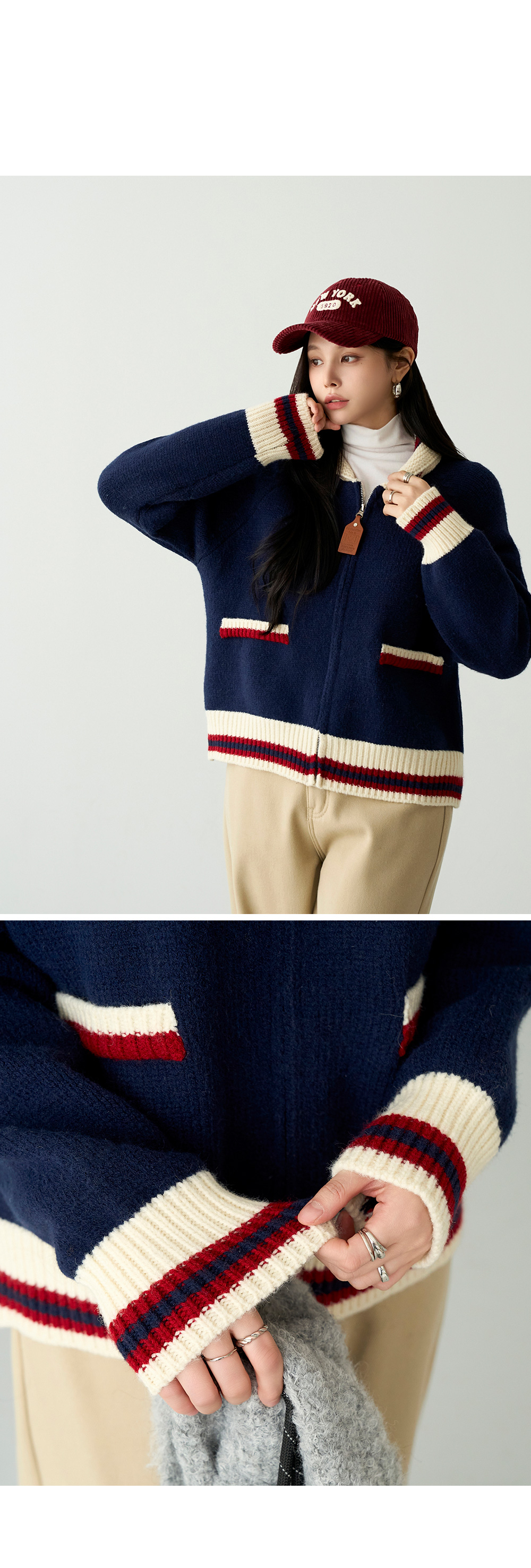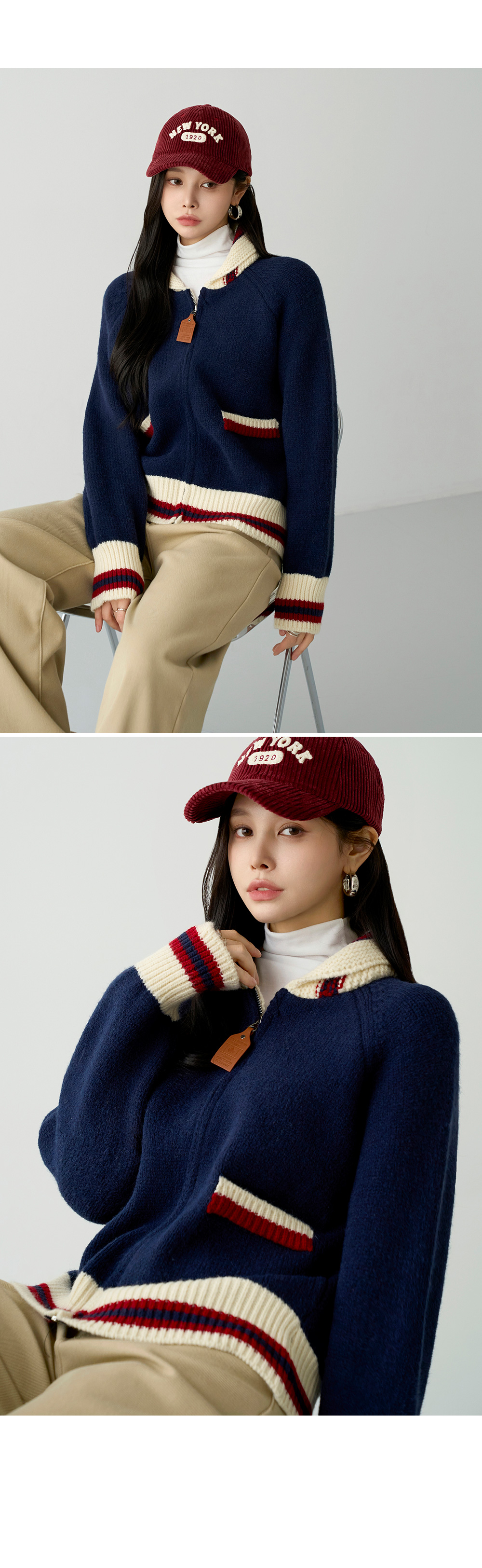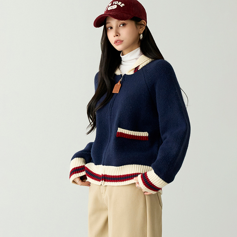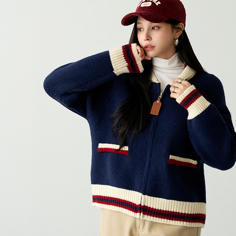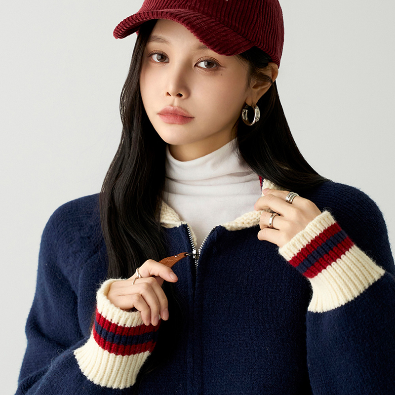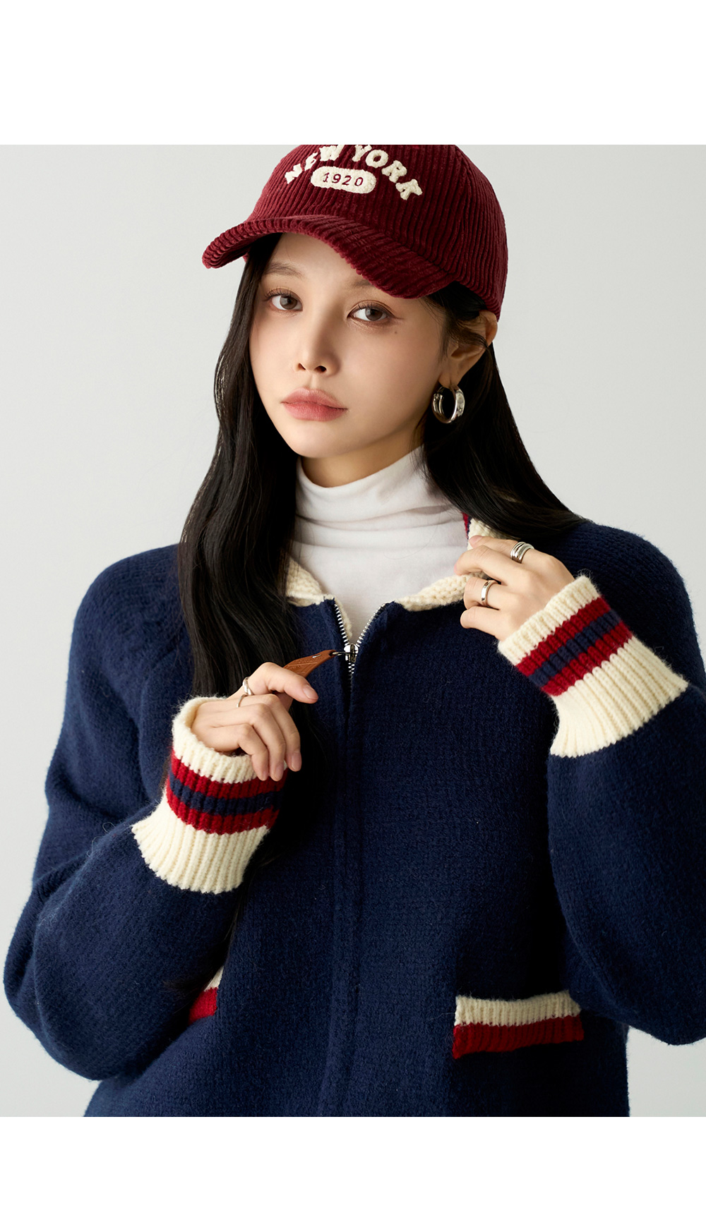 - 카라넥, 소매단, 페이크포켓, 밑단까지 배색이 통일되어 멋스러운 포인트 연출