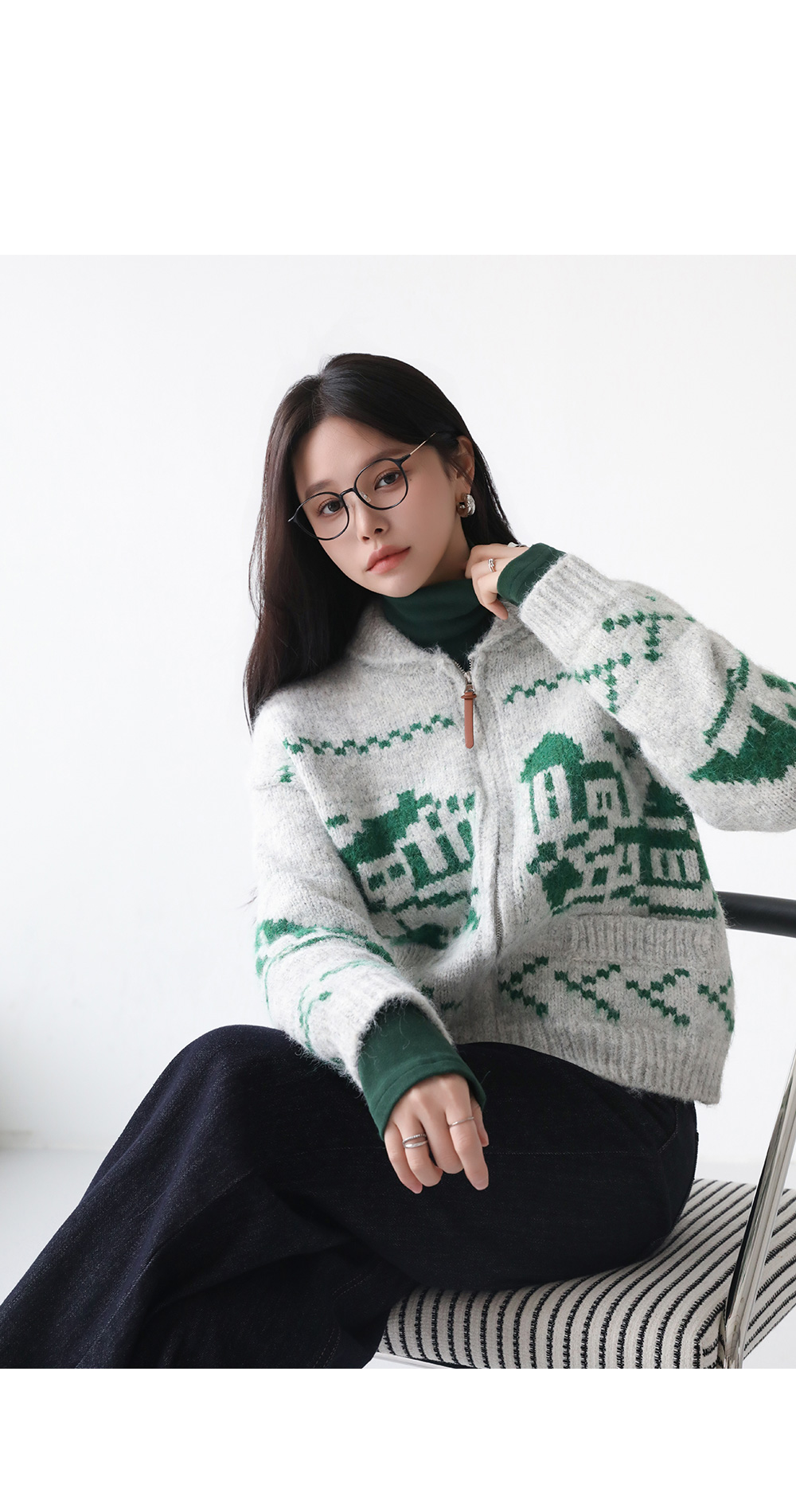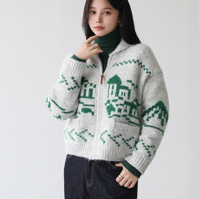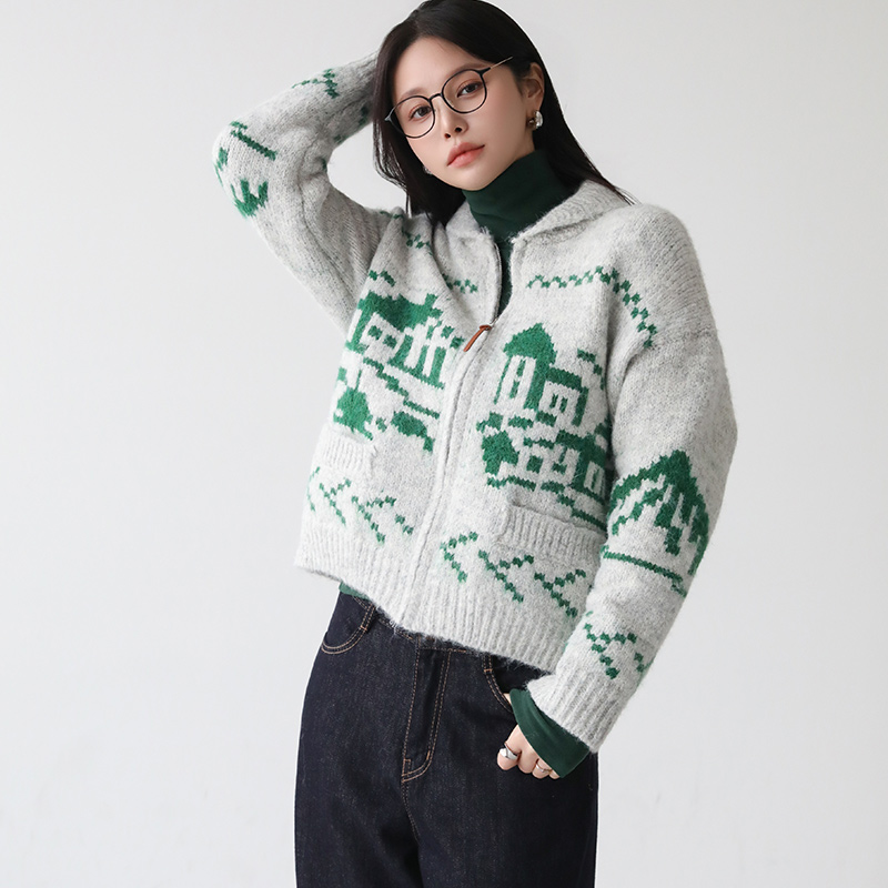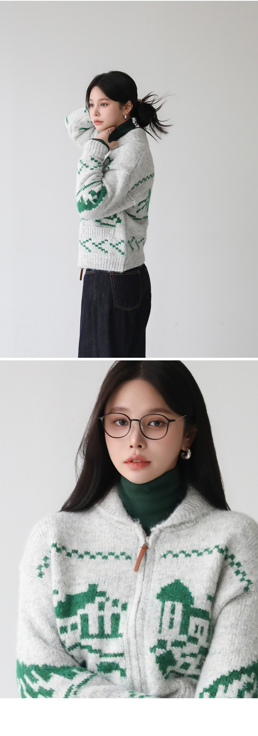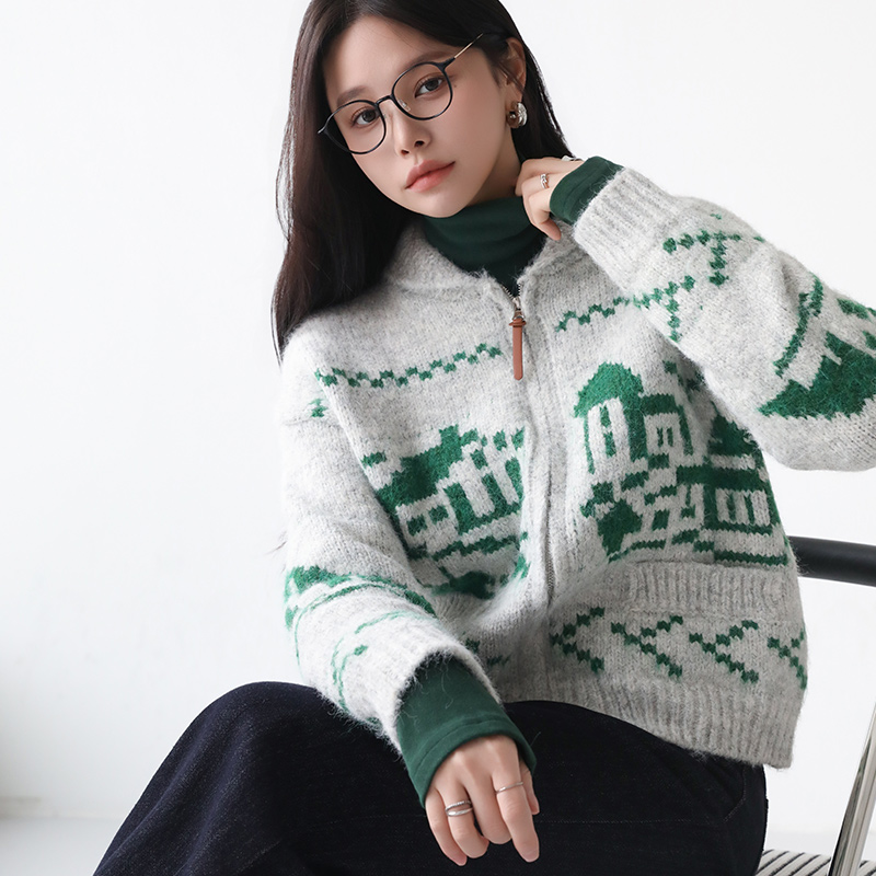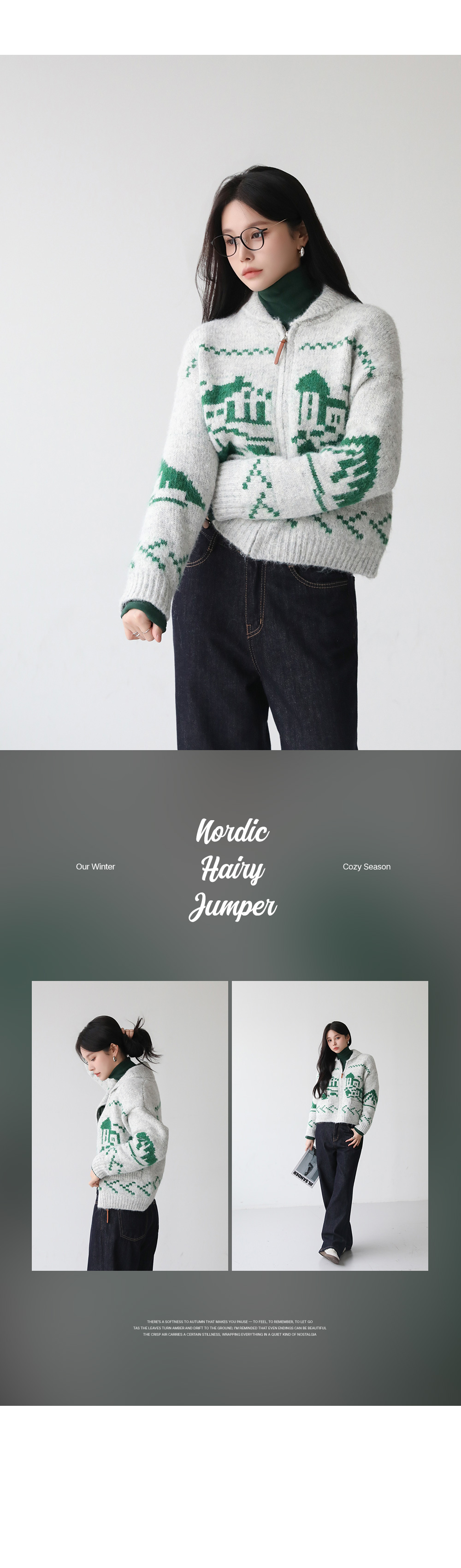 - 포슬포슬 헤어리한 니트 소재로 따스함이 느껴지는 니트 집업