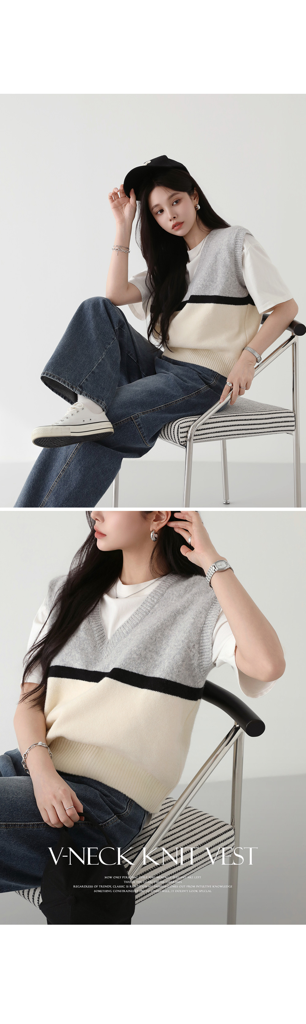 - 깊게 파인 브이넥 라인으로 답답해 보이지 않고 시원한 넥라인을 연출