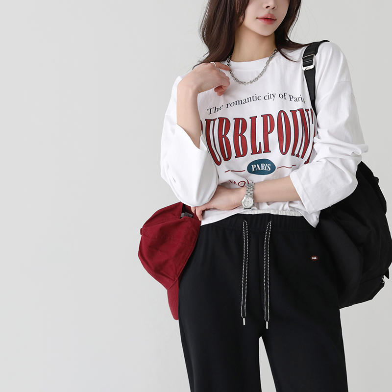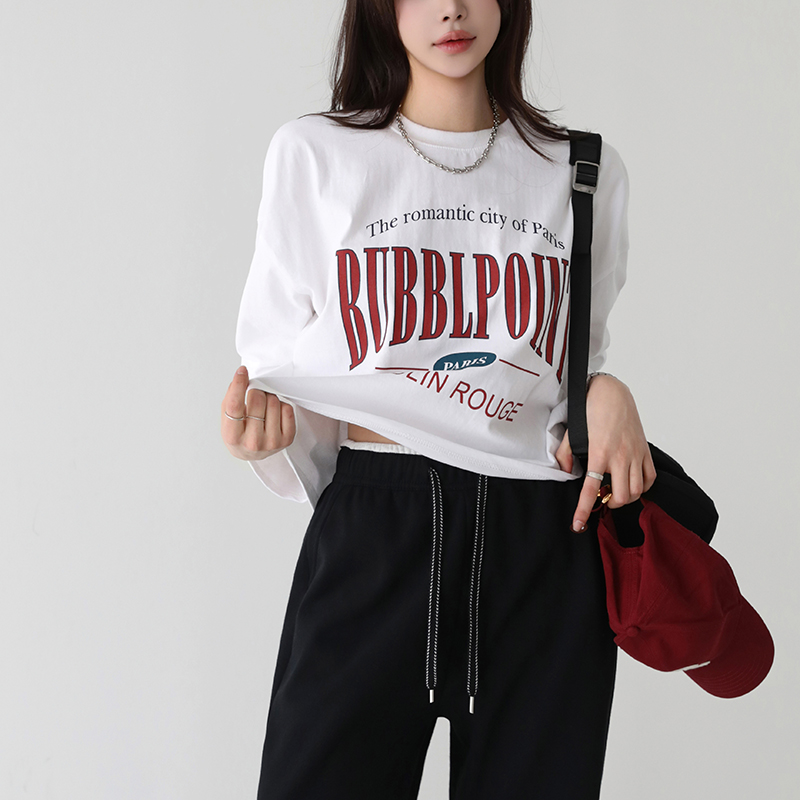 - 세미 크롭 기장의 데일리로 착용하기 좋은 티셔츠