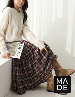 [메르시마리에] 소프트 플리츠 체크 롱 스커트 #53480
