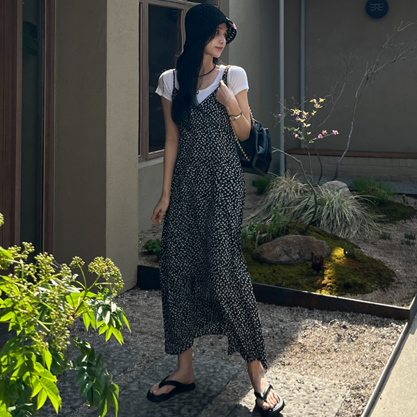 잔 꽃 플라워 끈나시 롱 원피스 #38506