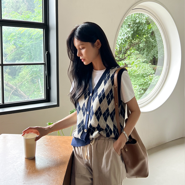 아가일 패턴 니트 조끼 #110865