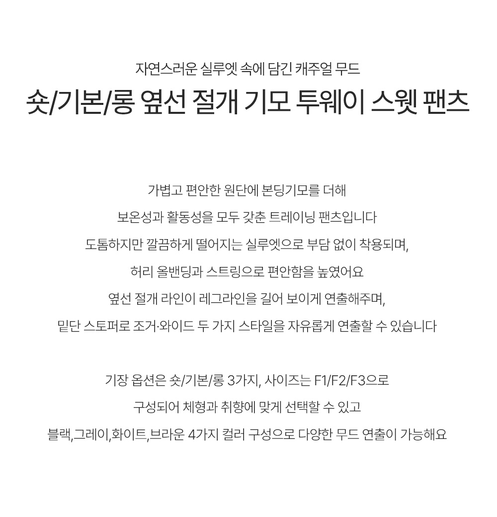 - 밑단 2WAY 조절(벌룬조거 / 와이드) 가능