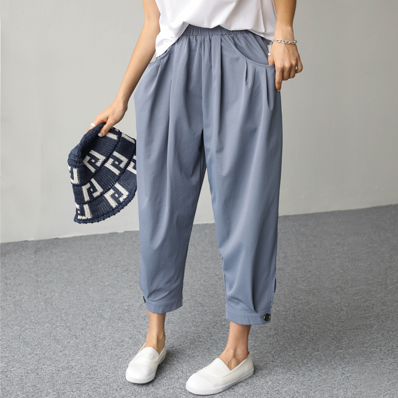 시원한 소재와 밑단 단추 포인트로 스타일과 편안함을 동시에!