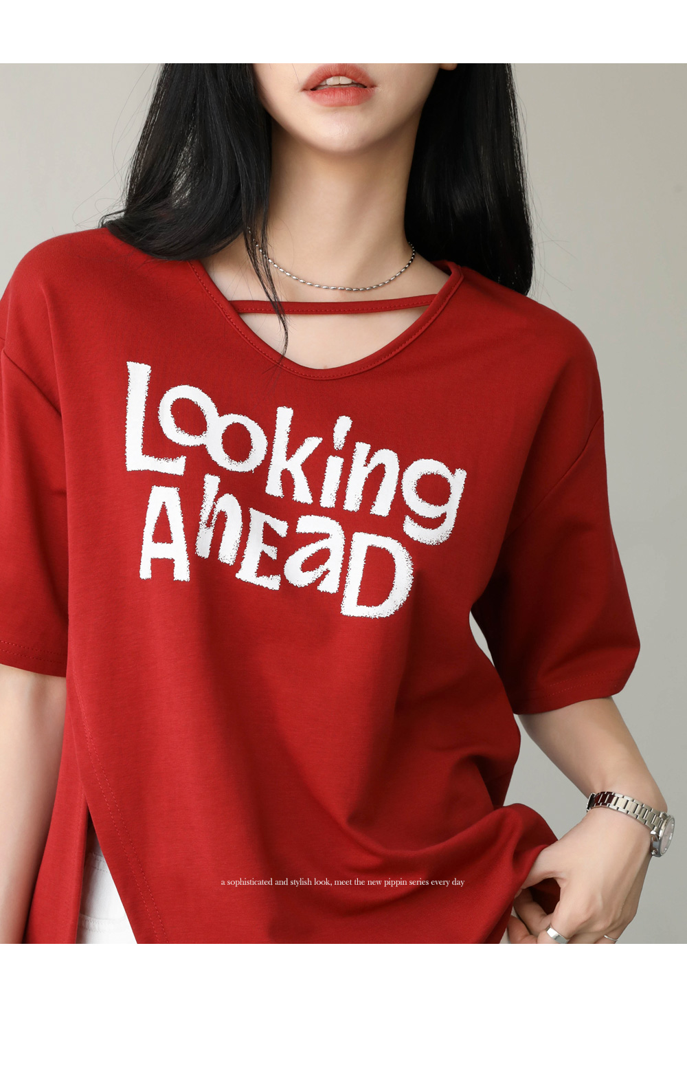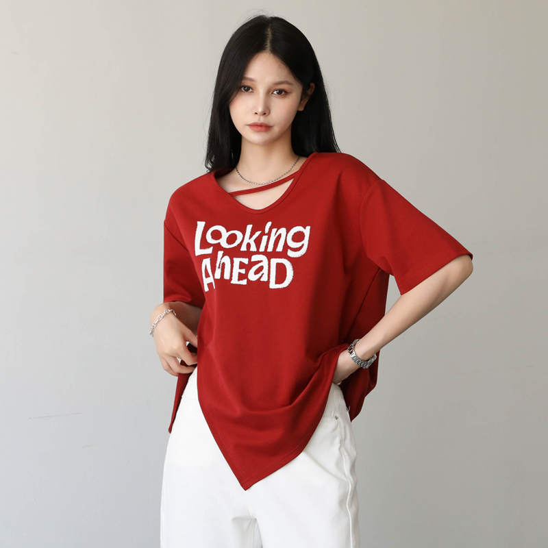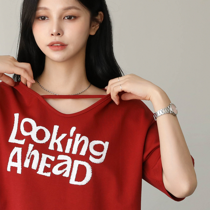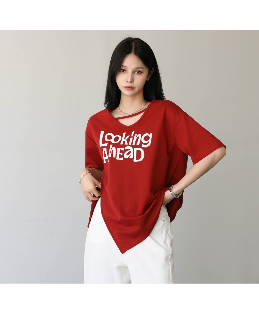 밑단 절개 프린팅 티셔츠 #111428