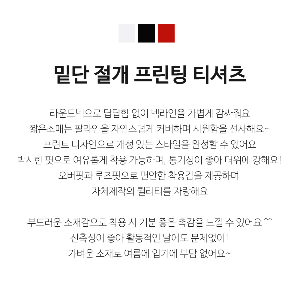 그건 바로 이 티셔츠의 라운드넥과 짧은소매 덕분이죠~