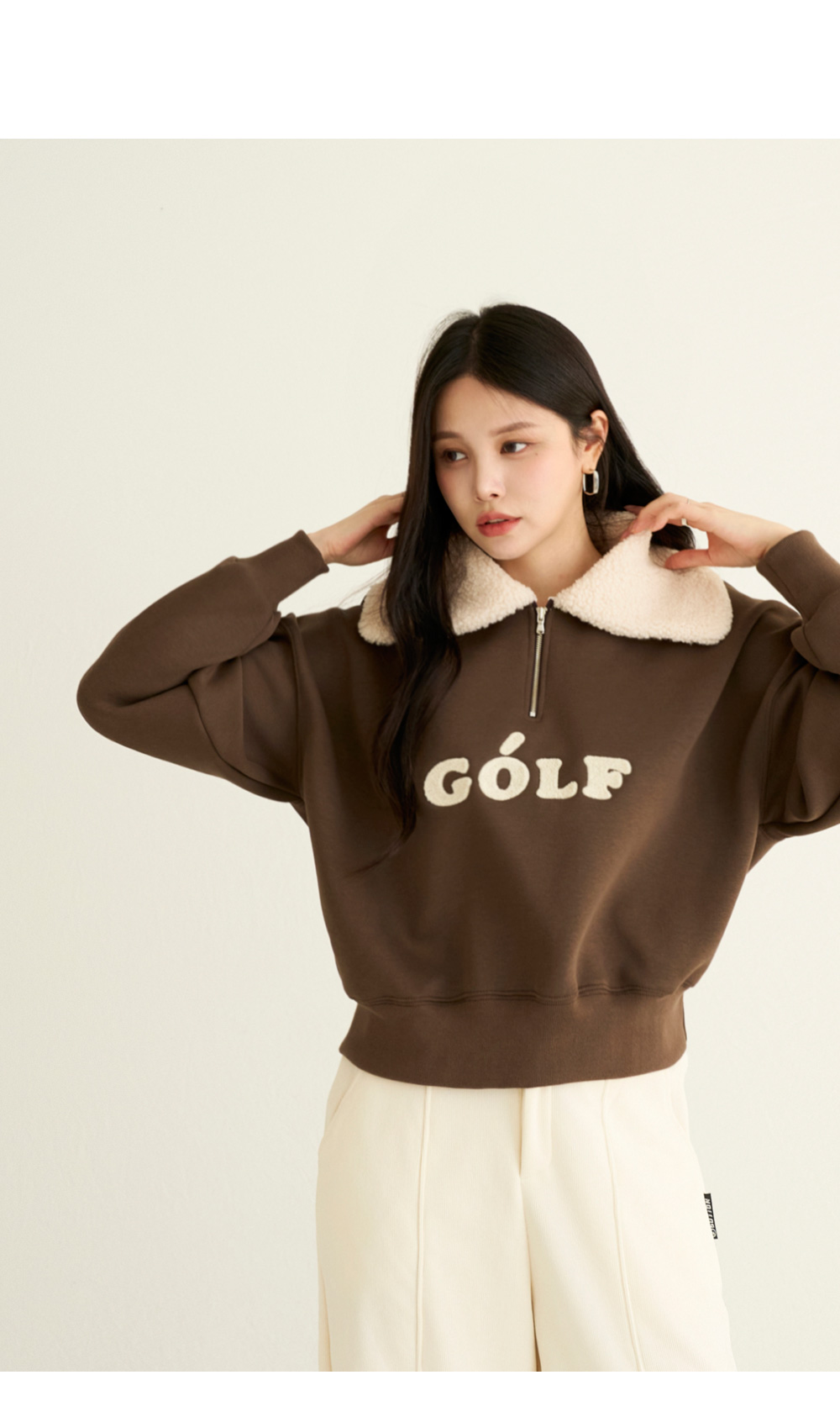 부클카라로 따뜻함을 더하고 하프집업으로 실용성을 챙겼어요