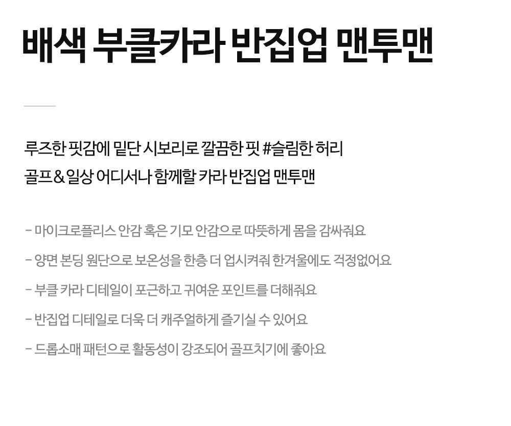 기존 맨투맨에서 느꼈던 답답함과 투박함을 벗어나
