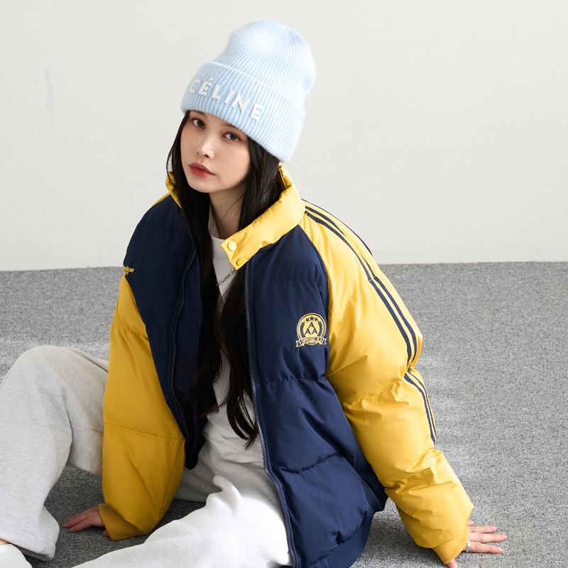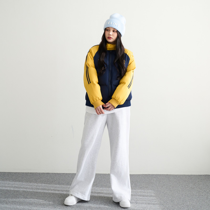 배색소매와 트랙라인은 스포티함을 한껏 부각시켜주죠