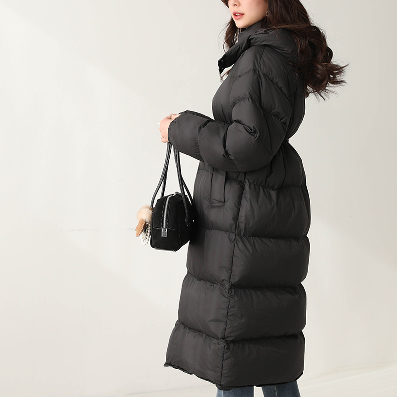 그 결과, 허리스트링으로 날씬해 보이면서도 따뜻한 롱패딩이 탄생했답니다