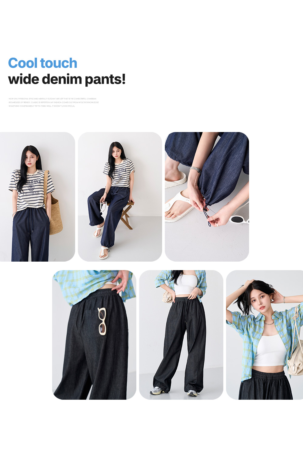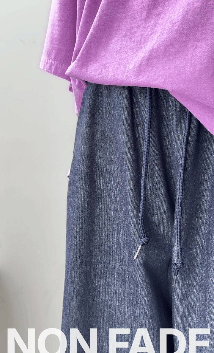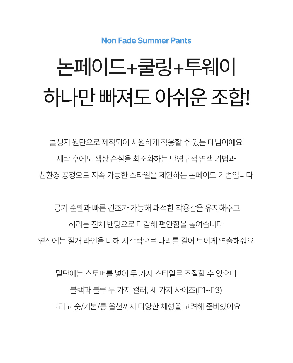 - 시원한 촉감의 쿨생지 논페이드 원단으로 제작된 데님 팬츠