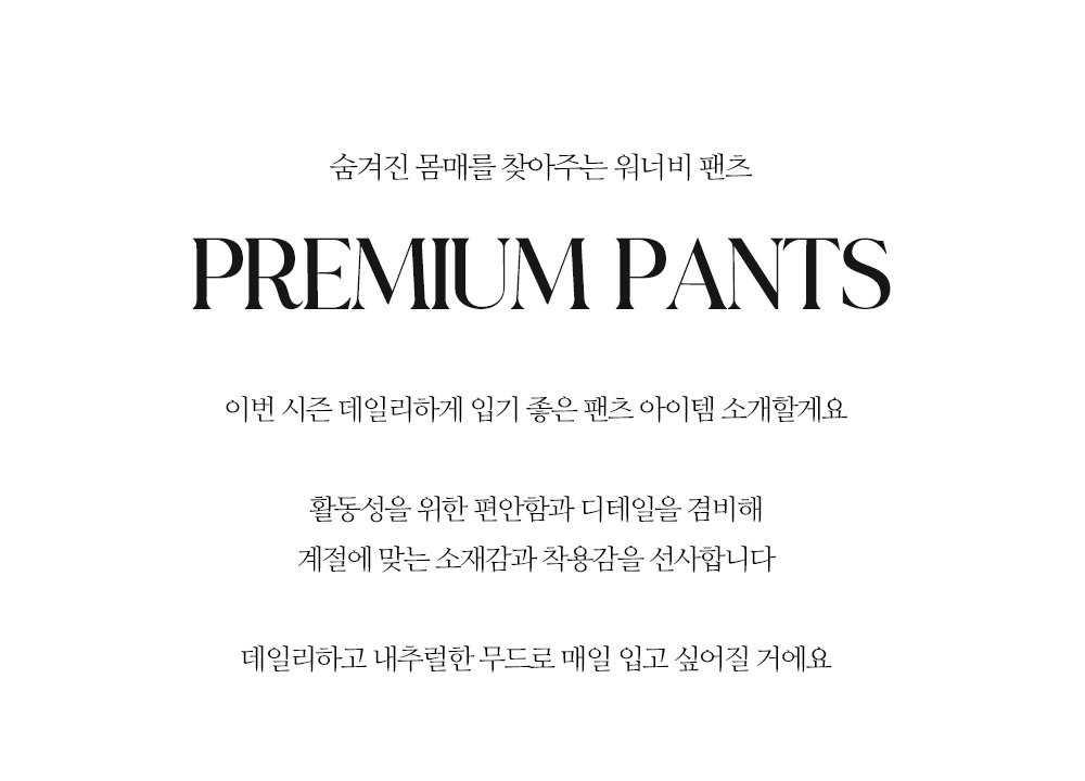 - 전체적으로 여유 있는 핏으로 다리 라인을 커버해주면서 트렌디한 분위기를 완성