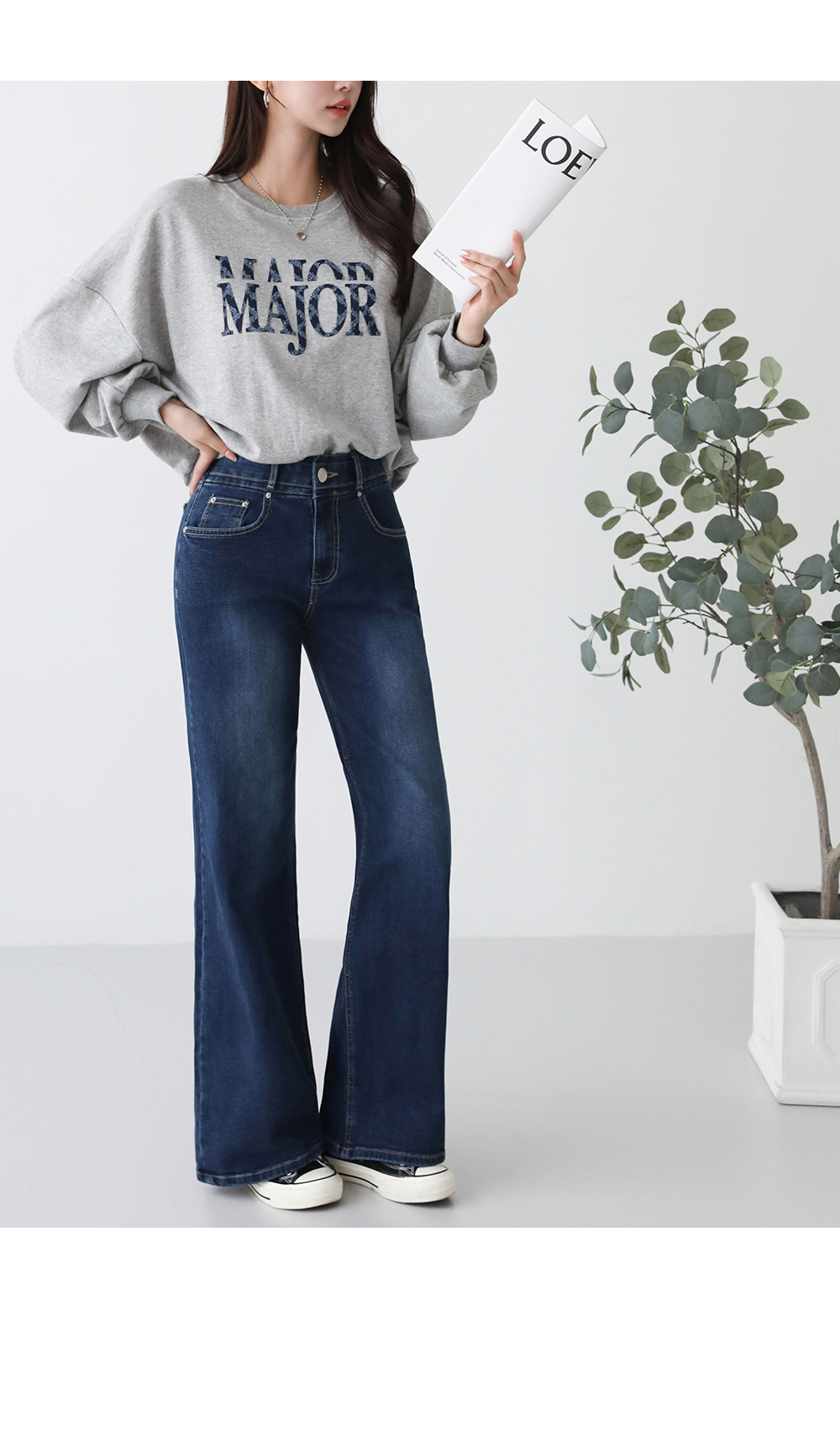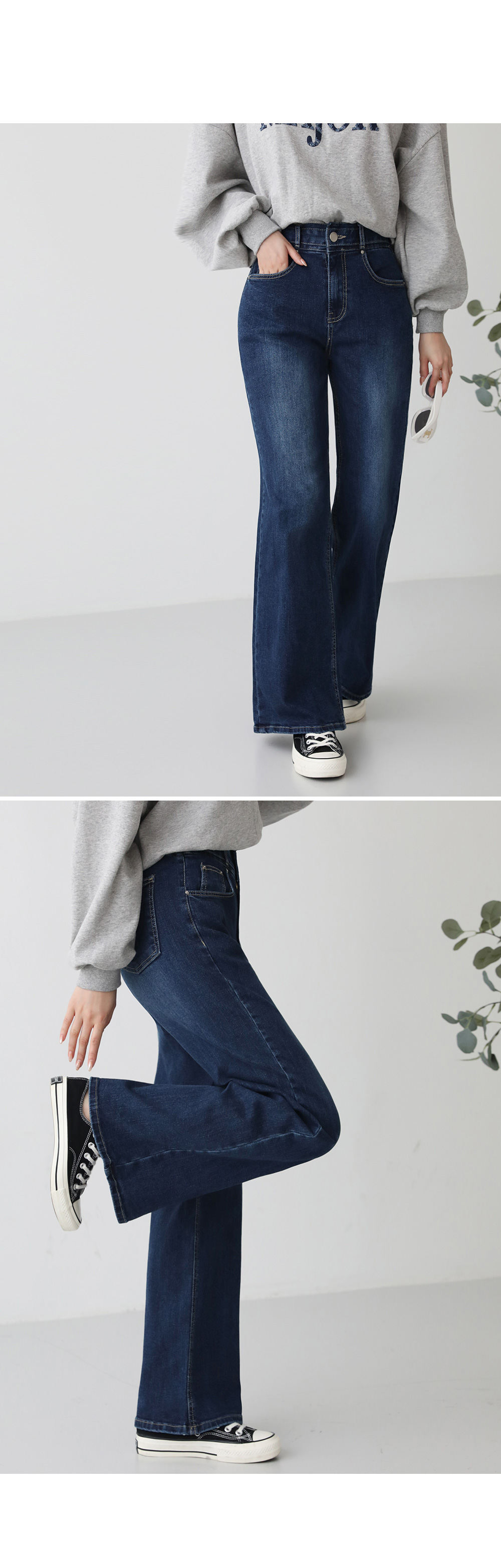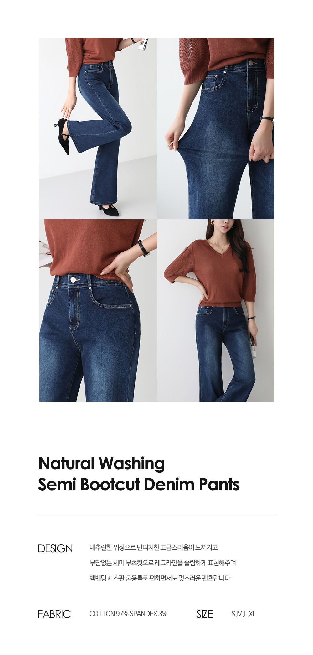 - 세미 부츠컷으로 레그라인을 슬림하게 표현