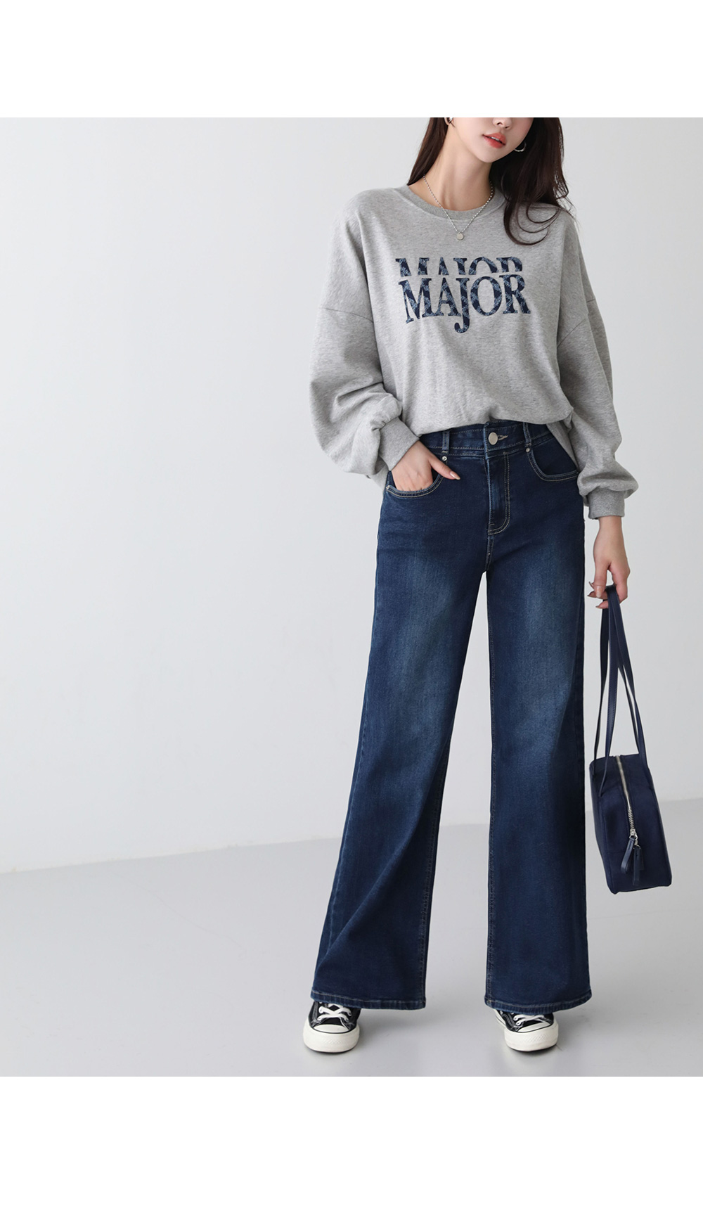 - [MINZY 모델-진청 S 착용] 163cm / 55 size / 하의 26