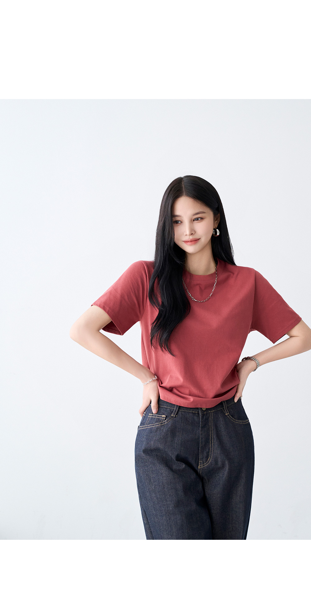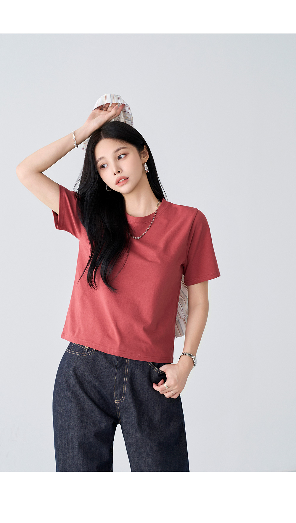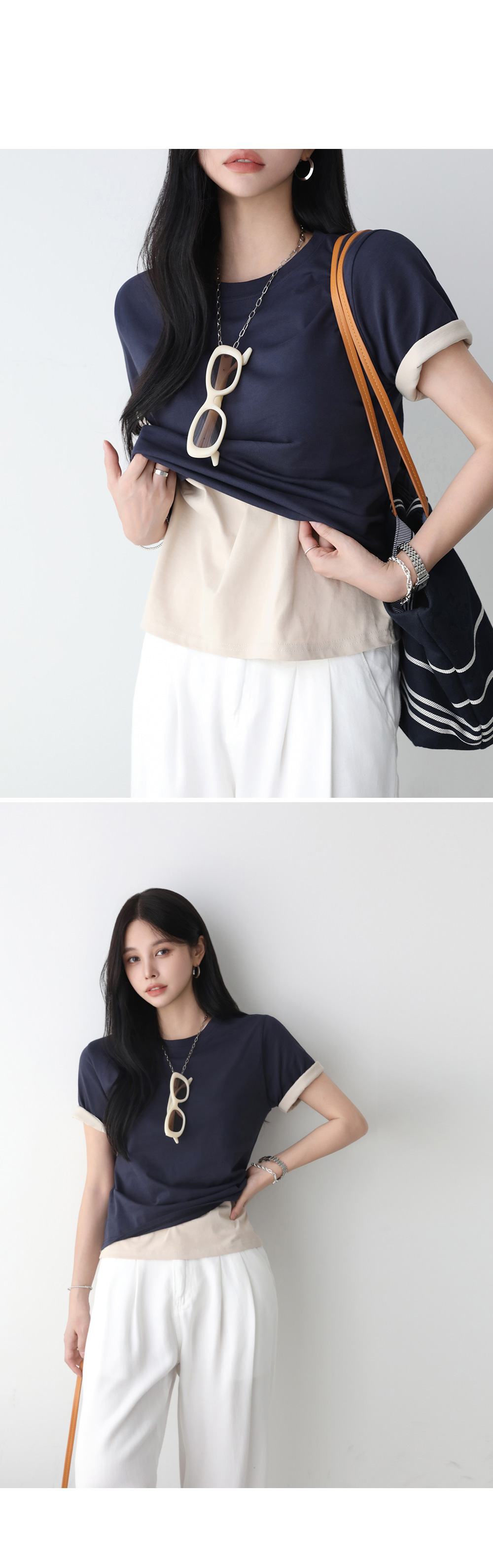 - 부담없는 적당한 기장감의 라운드 네크라인
