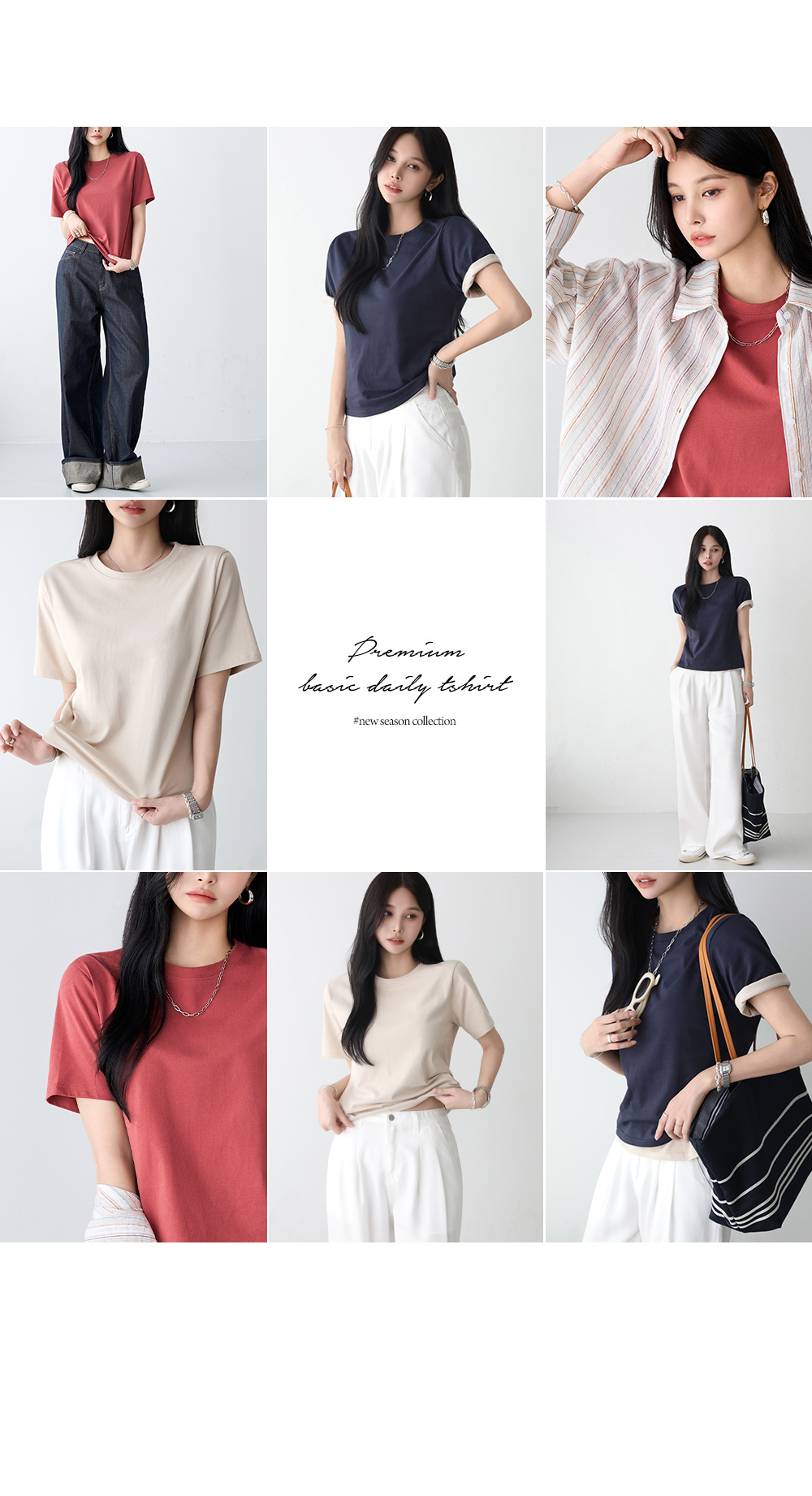 - 베이직한 디자인으로 두루두루 활용하기 좋은 데일리 티셔츠