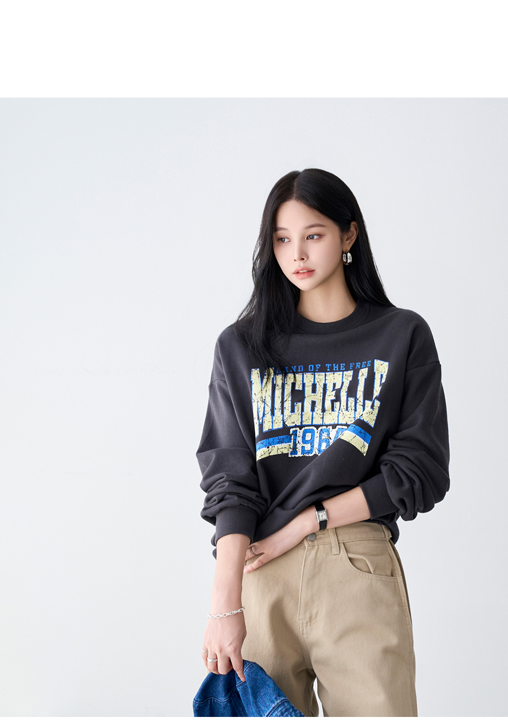 - 프론트 빈티지한 레터링 디테일로 캐주얼한 무드