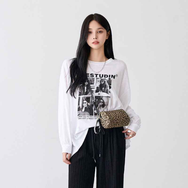 - 간절기 시즌 함께 하기 좋은 가벼운 두께감의 프린팅 긴팔 티셔츠