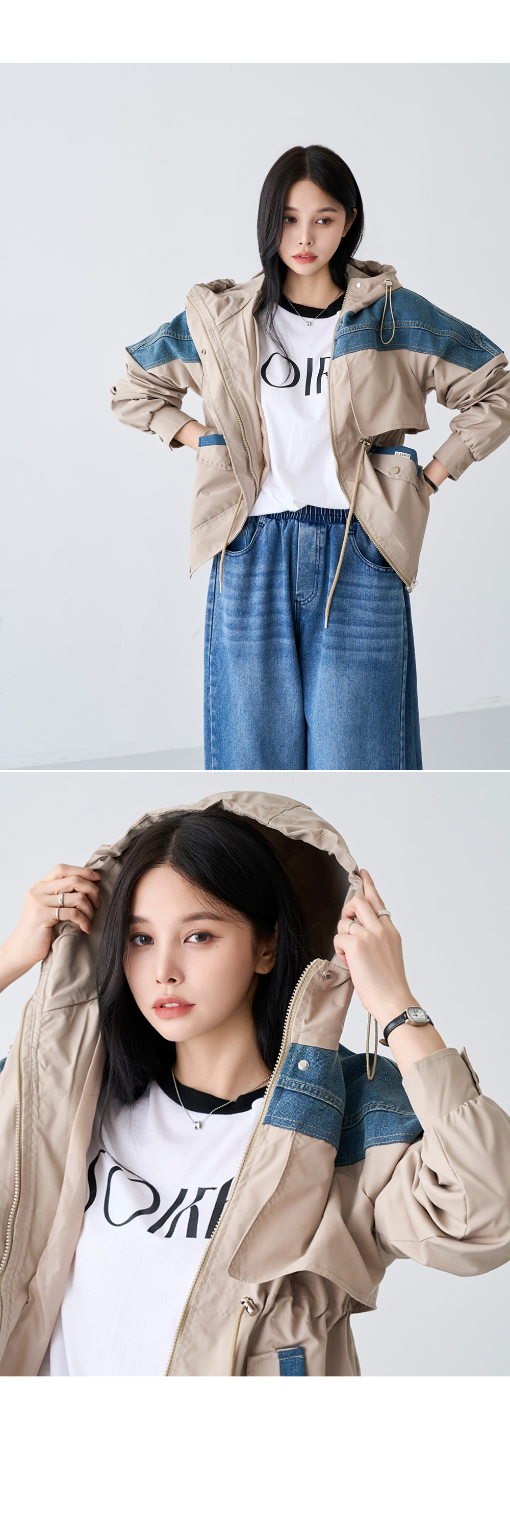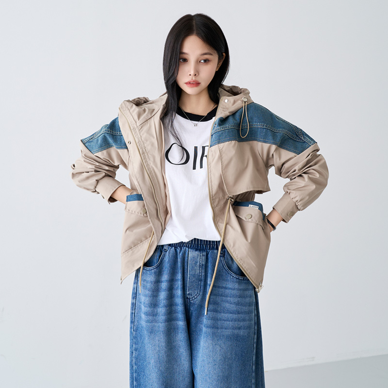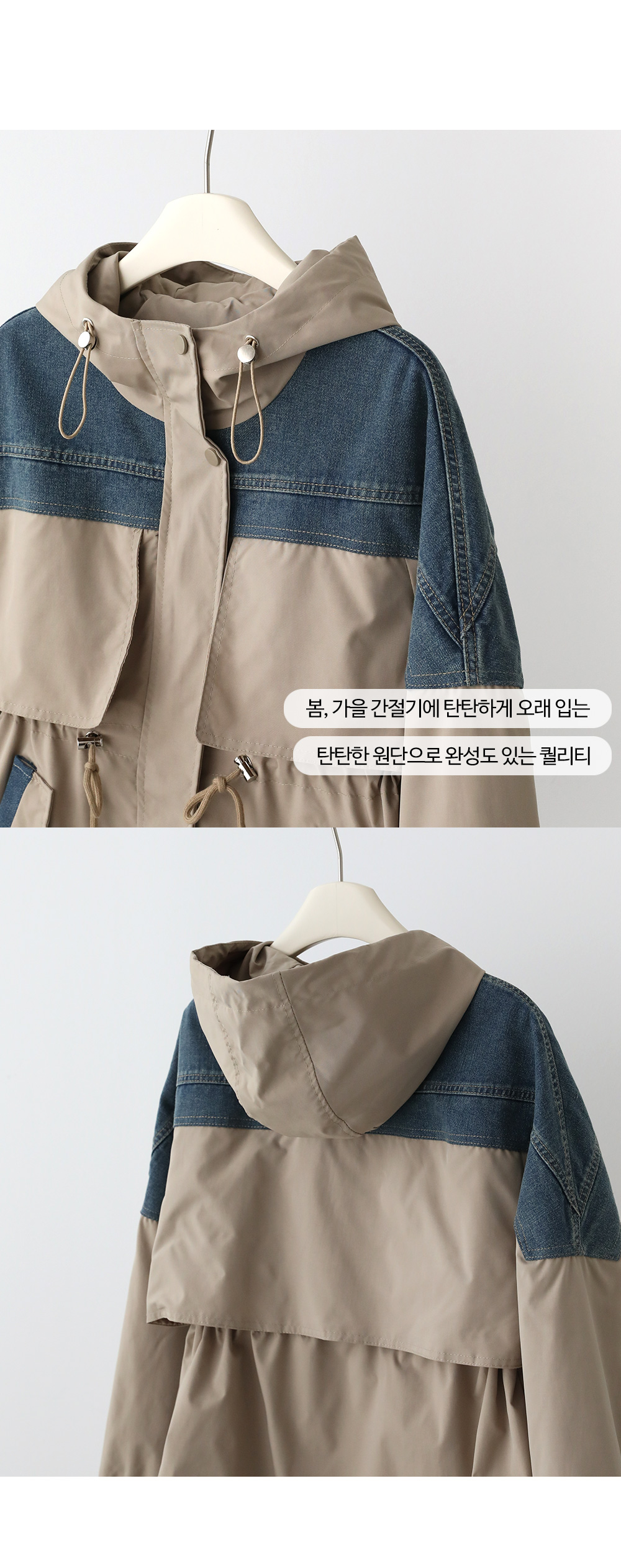 - 데님배색으로 스타일리시한 무드를 더해준 후드 점퍼