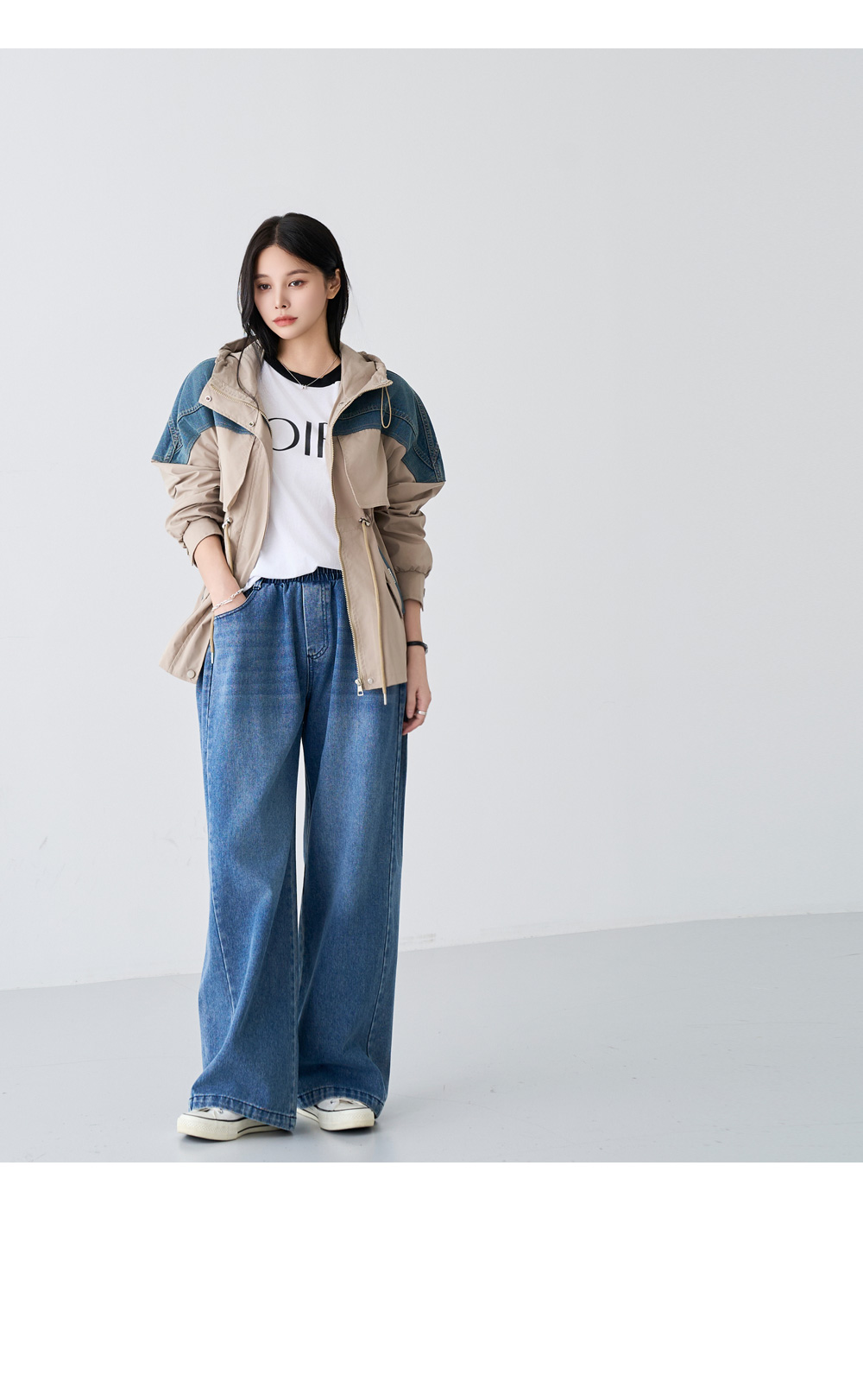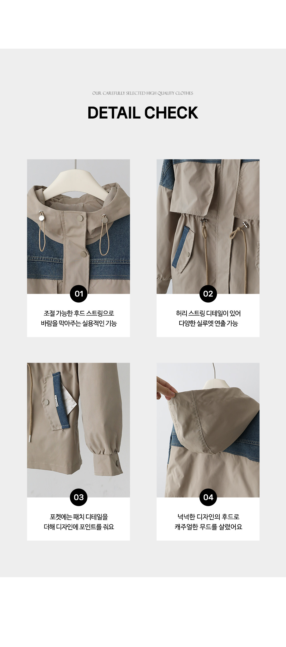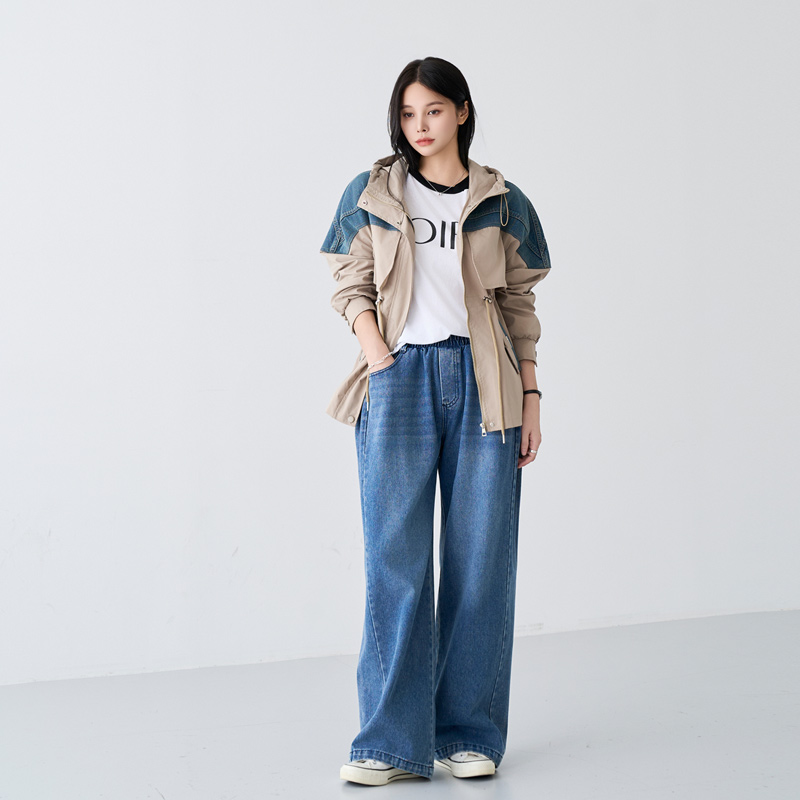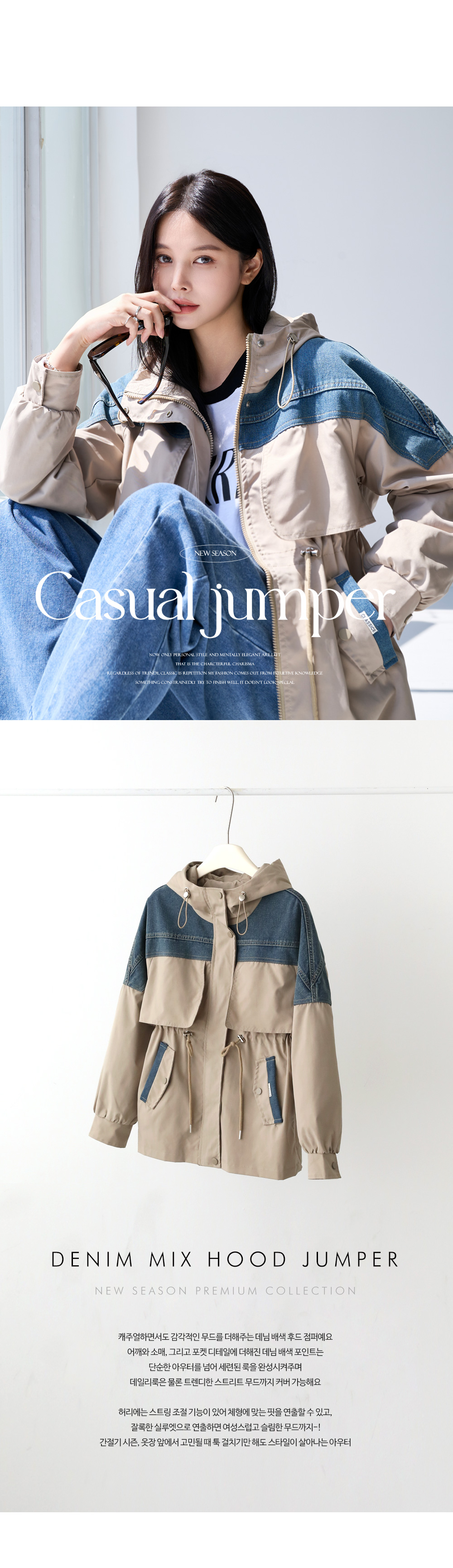 - 데님배색으로 스타일리시한 무드를 더해준 후드 점퍼