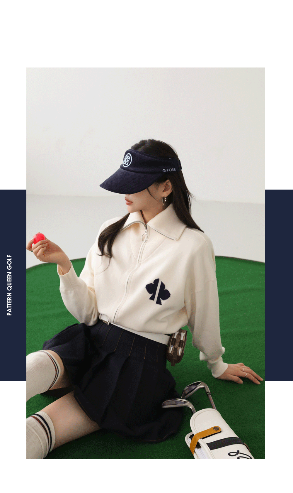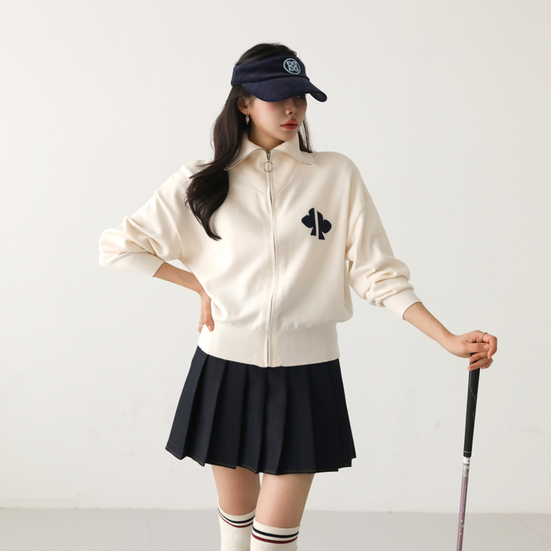 [패턴퀸 GOLF] 클로버 하이넥 니트 집업 #22626