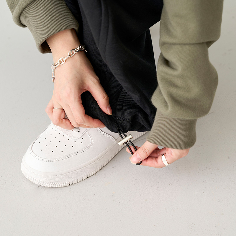 - 밑단에 스트링이 달려 있어 스트레이트핏 또는 조거핏으로 투웨이 연출