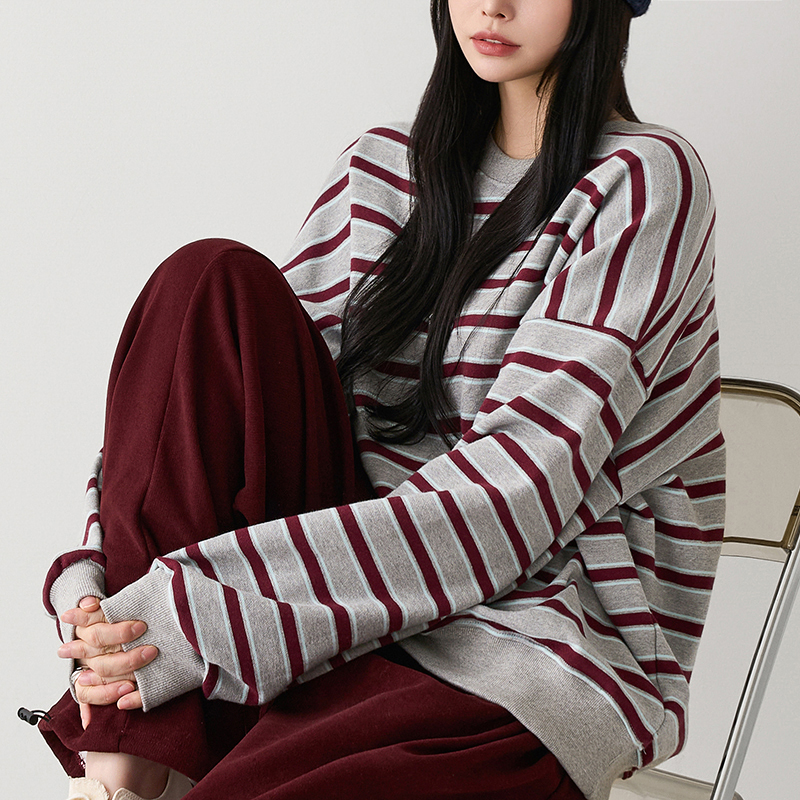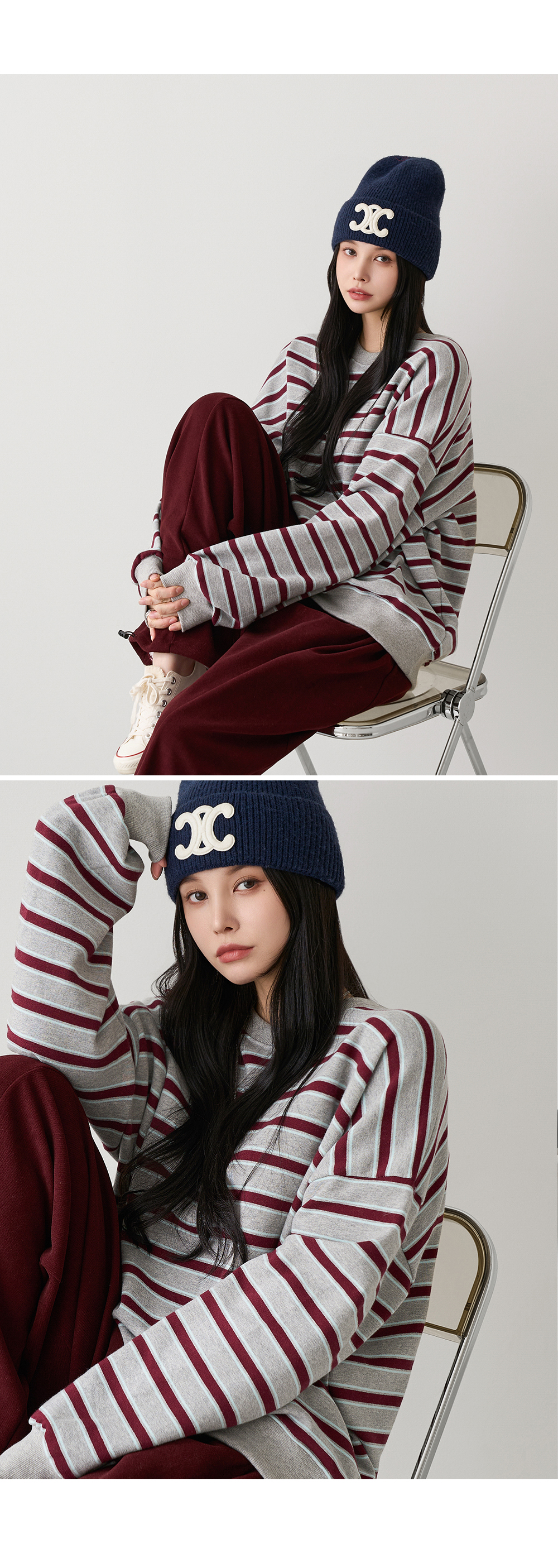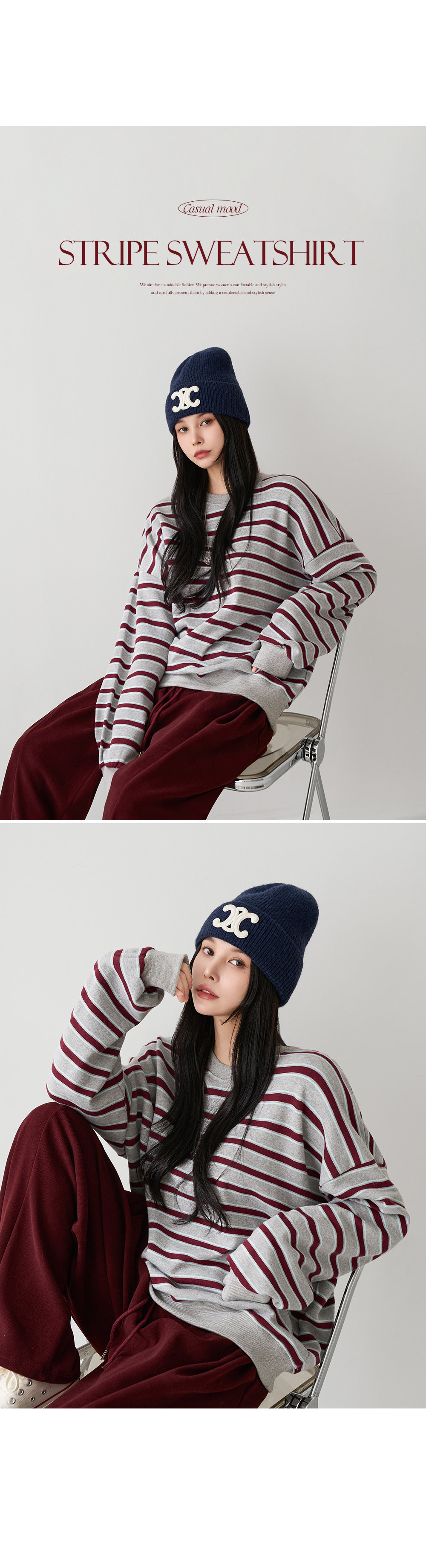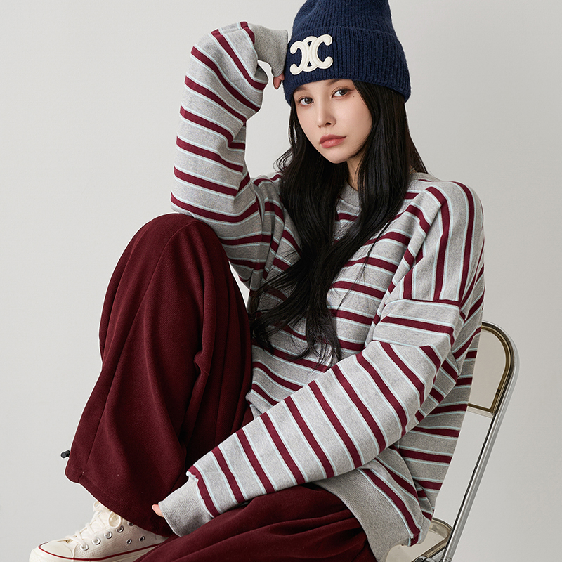 - 조화로운 배색 베이스의 스트라이프 맨투맨임