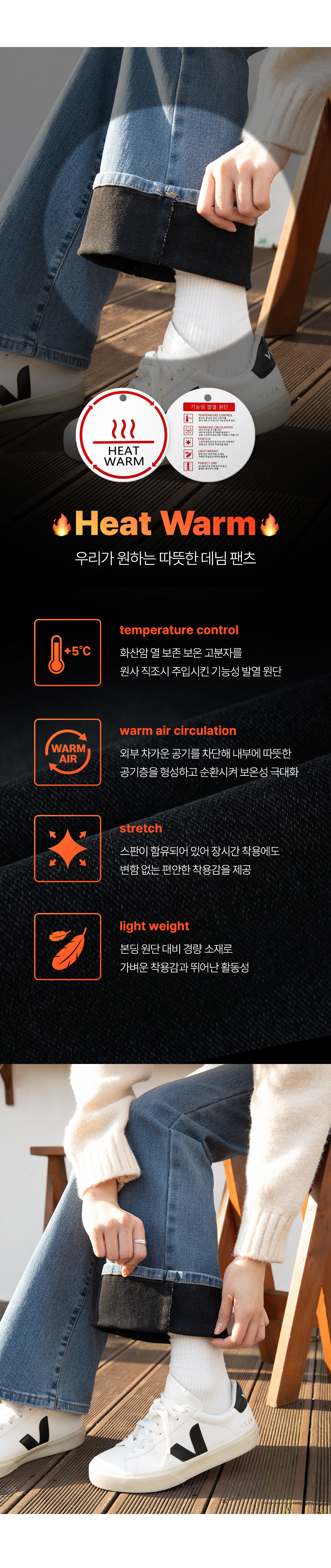 HEAT WARM 자체 발열 기능이 있는 기능성 발열 원단입니다.