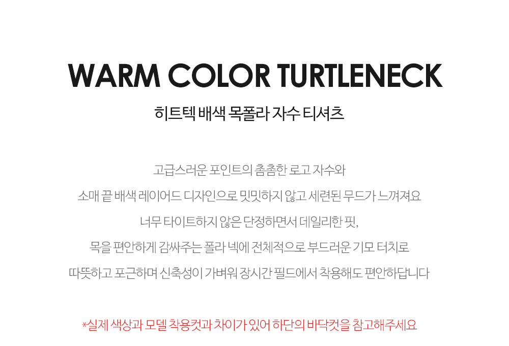 - 목을 편안하게 감싸주는 폴라 넥으로 보온성이 뛰어남