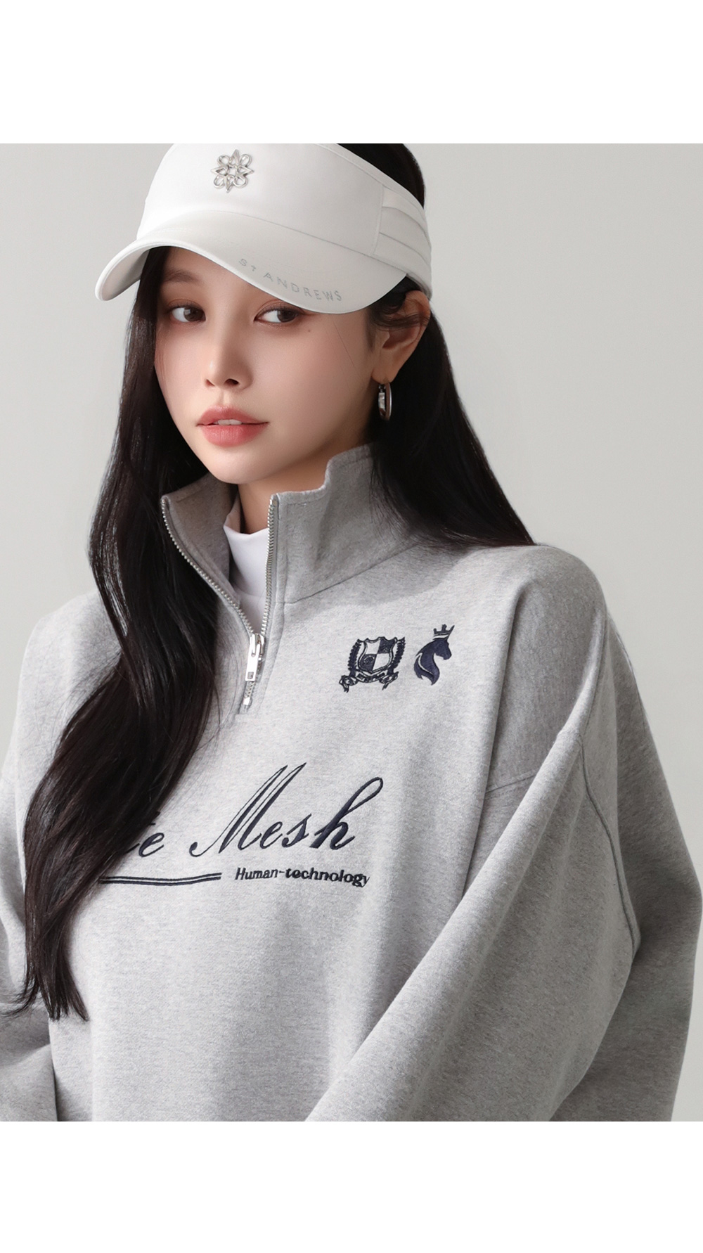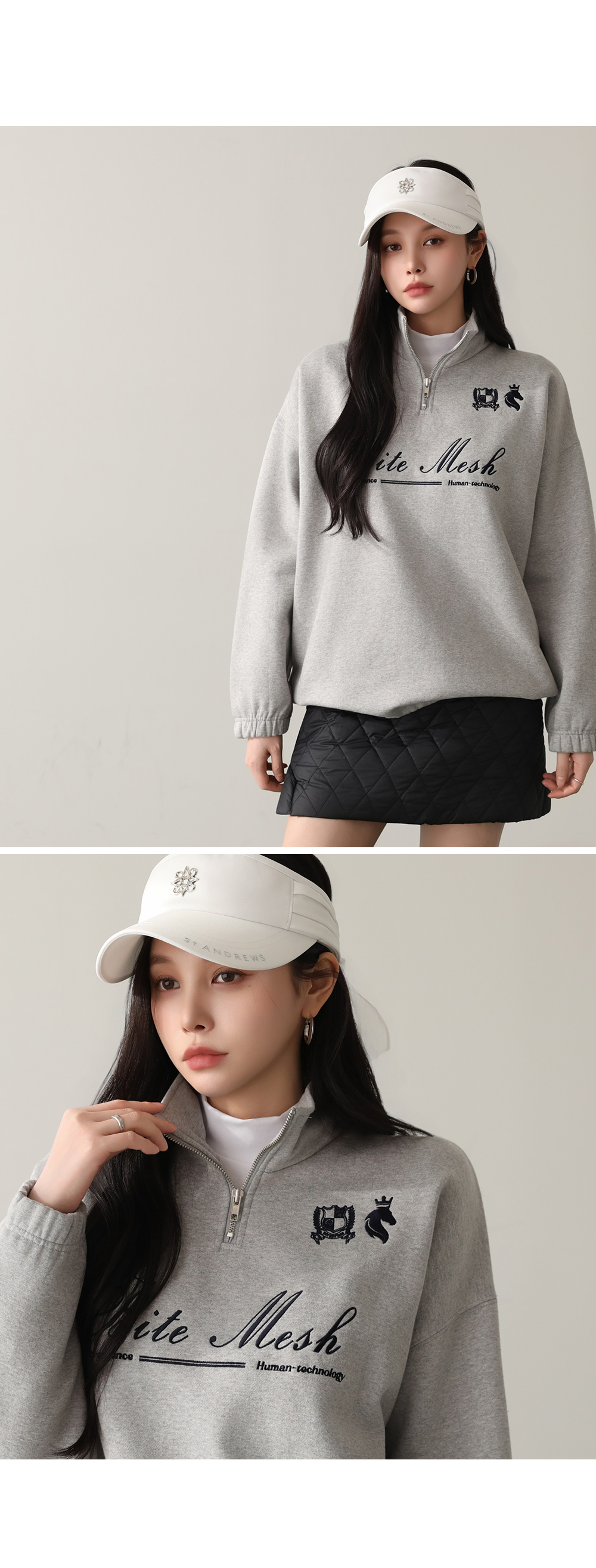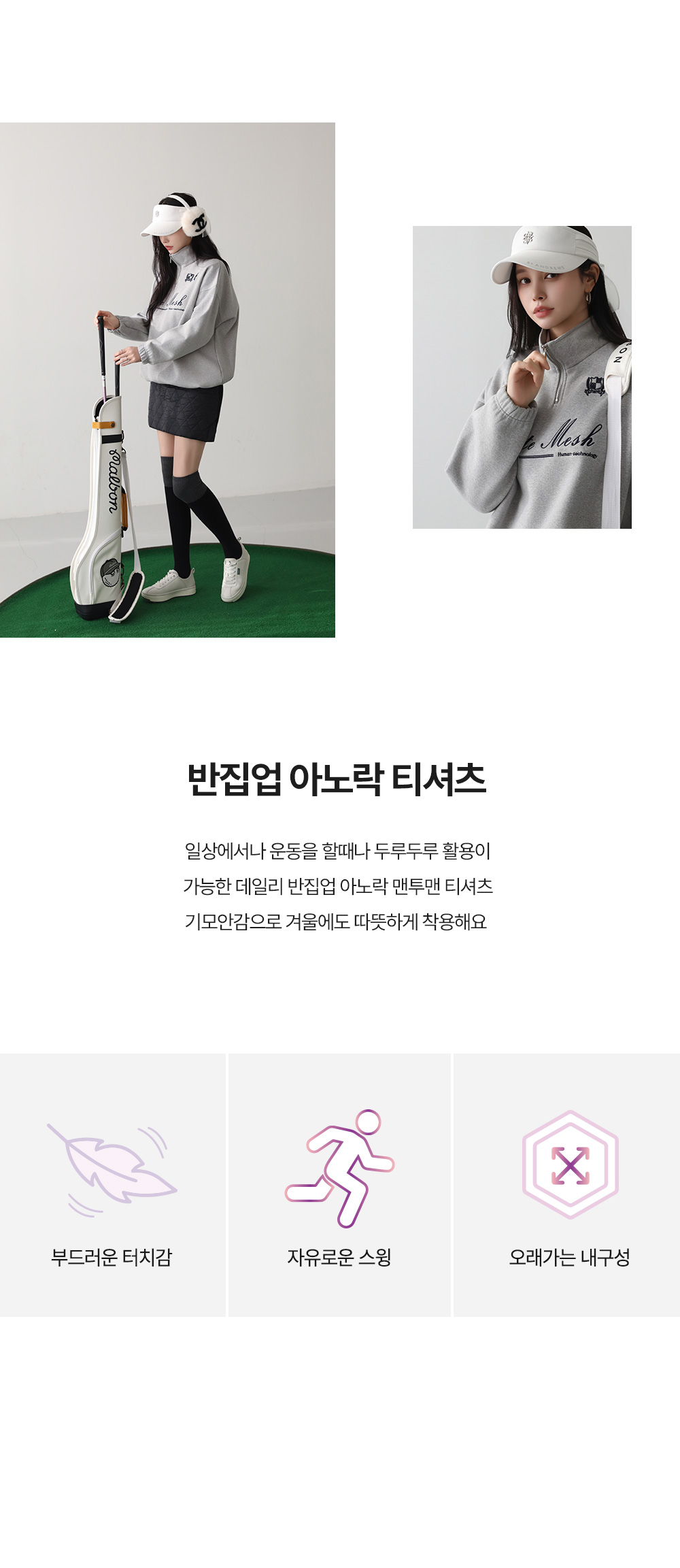 - 반집업 디자인에 멋스러운 자수 디테일로 캐주얼한 무드 연출 가능