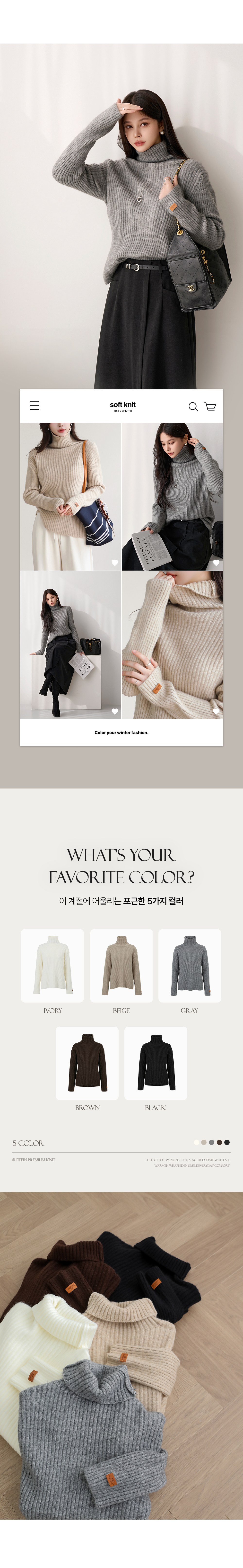 - 목을 감싸주는 하이넥 디자인으로 보온성과 분위기 모두 잡음