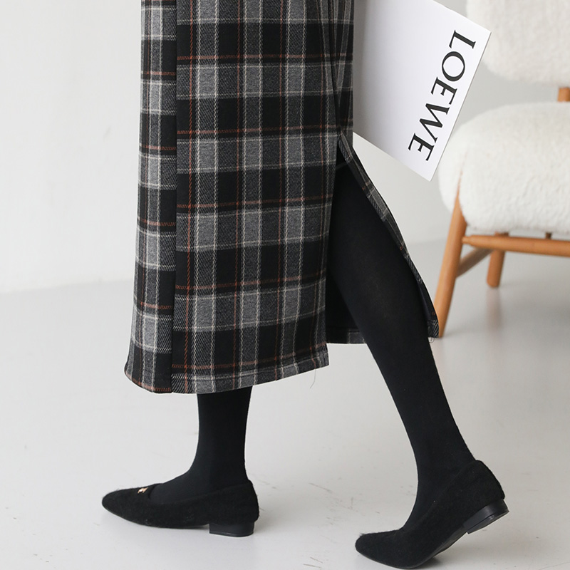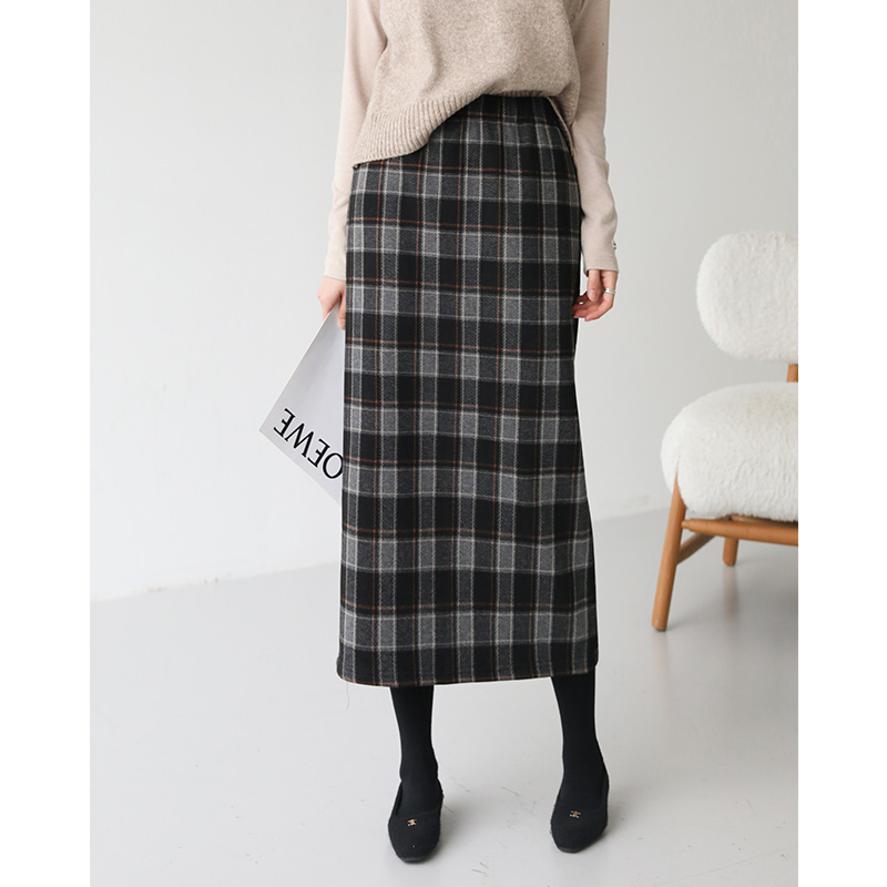 - 체크 패턴으로 클래식한 분위기가 살아나는 롱 스커트