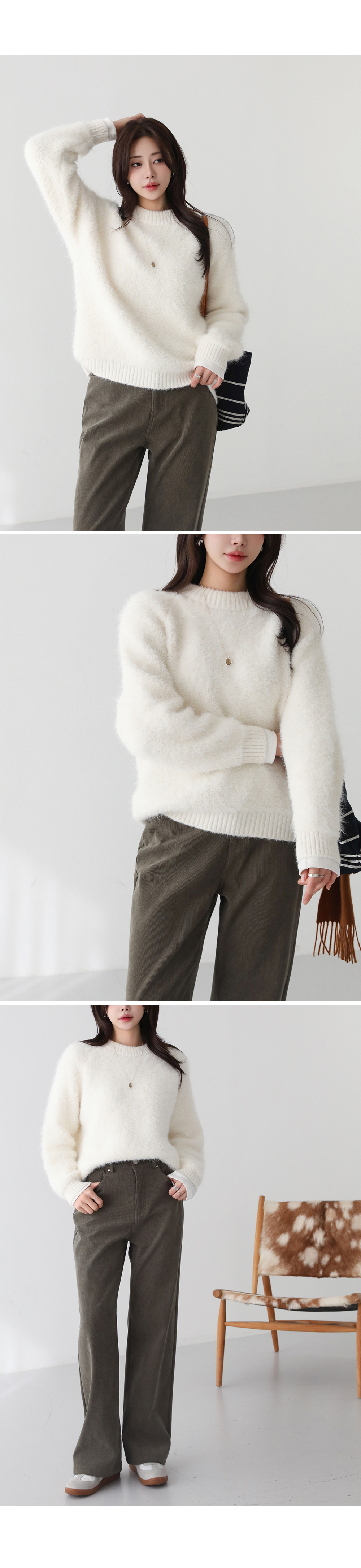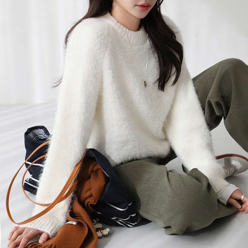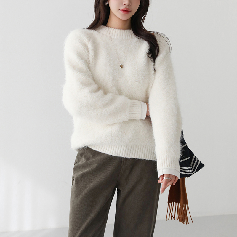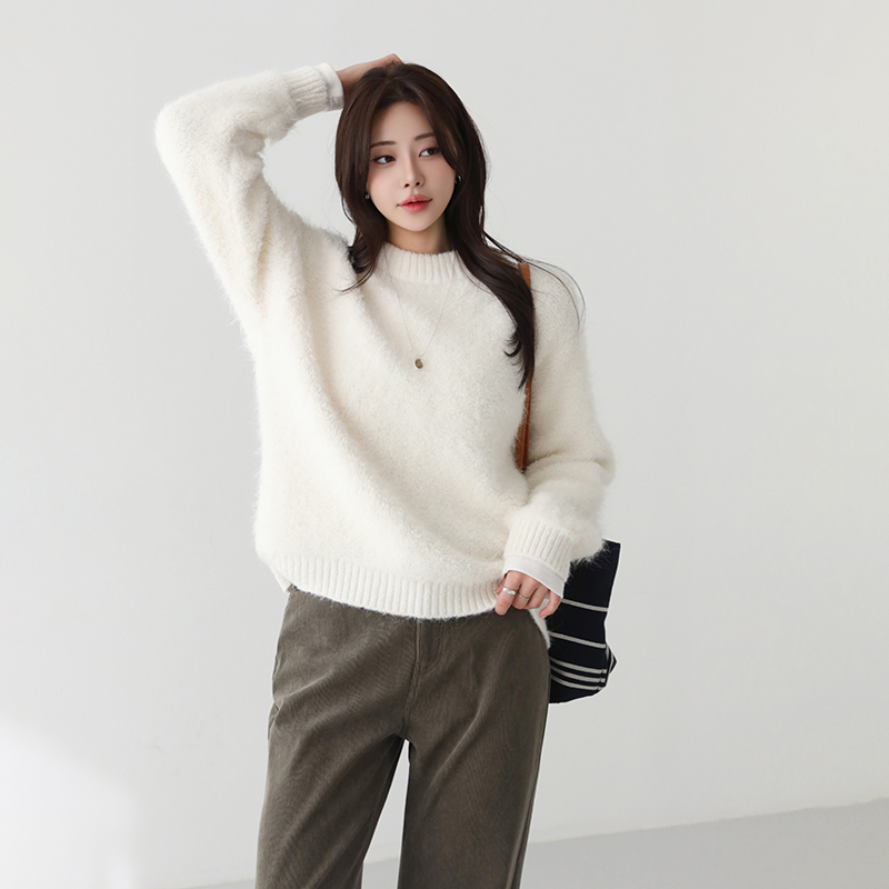 - 헤어감이 살아있는 니트 소재로 포근한 분위기 연출
