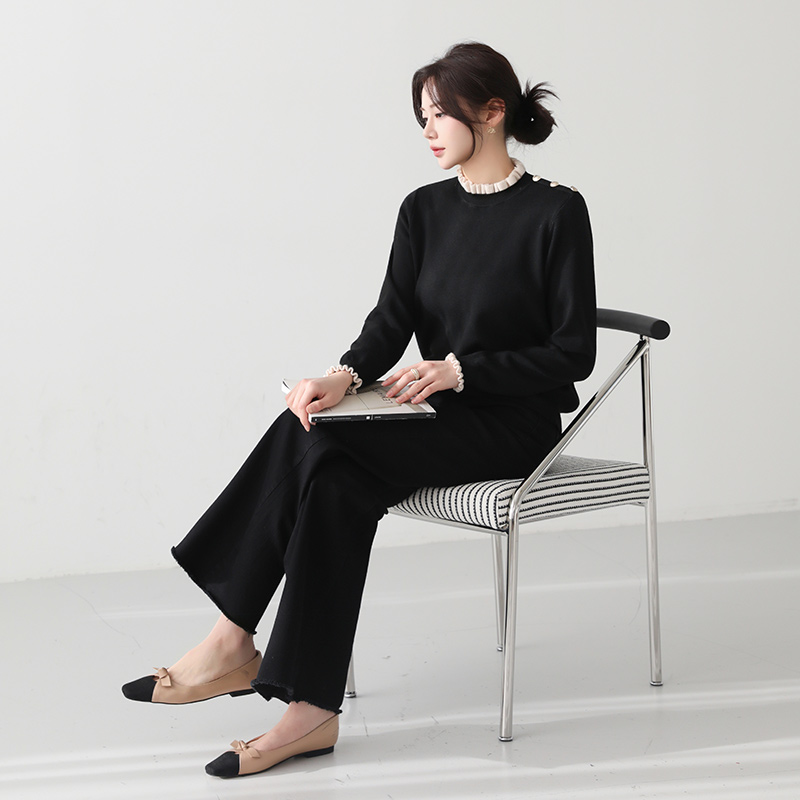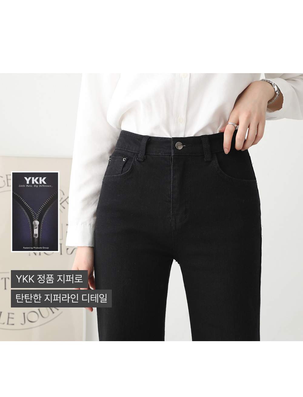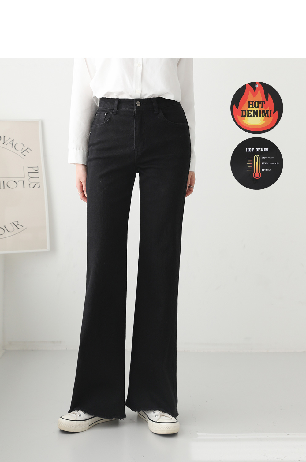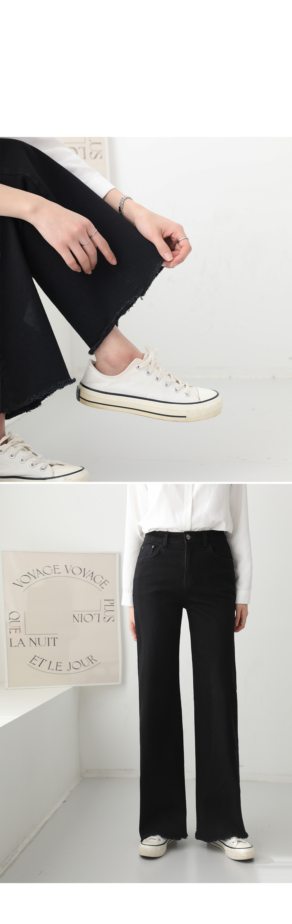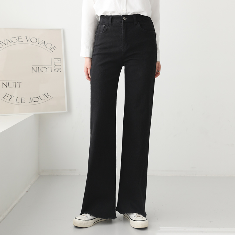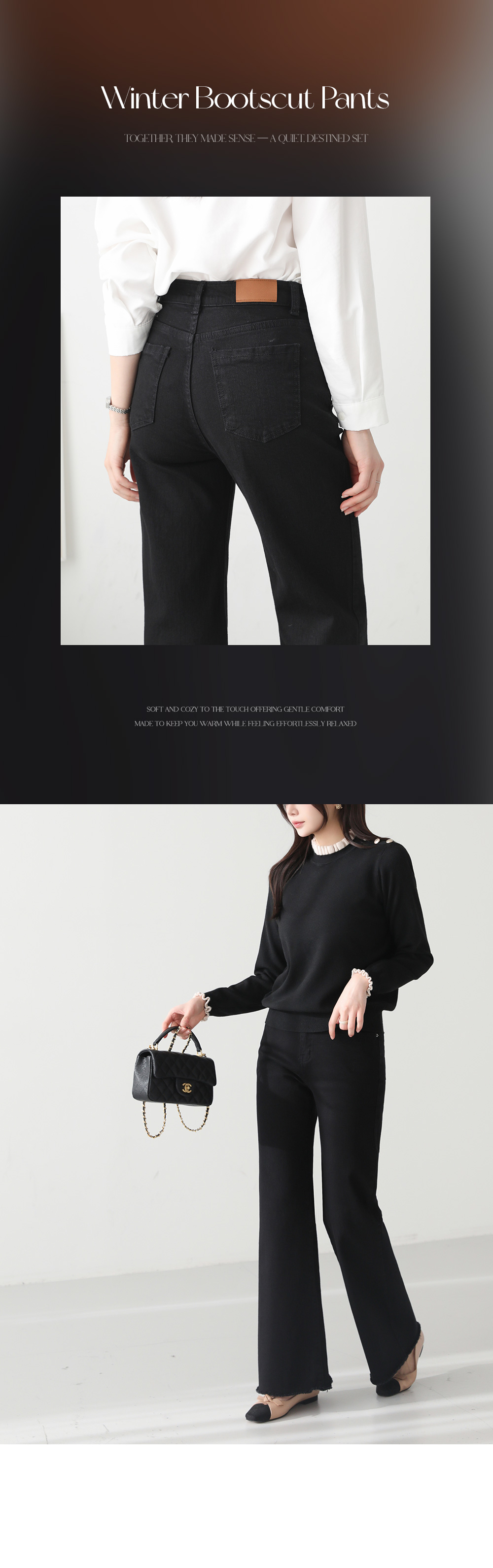 - 과하지 않은 세미 부츠컷 핏으로 다리 라인 정돈됨