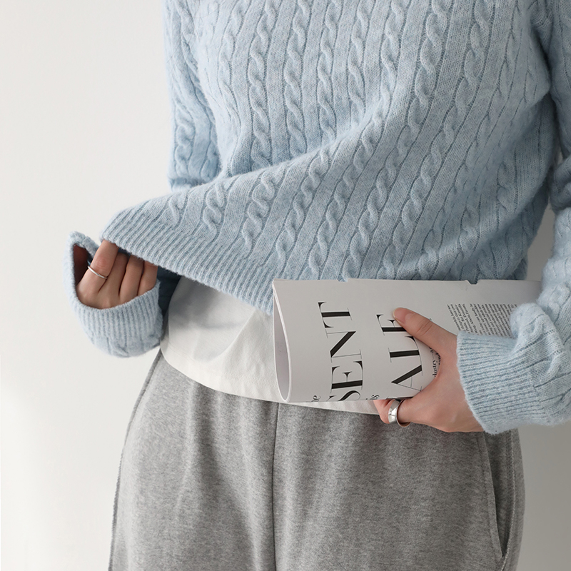 - 정교한 케이블 니트 짜임으로 따뜻한 무드를 연출해줌